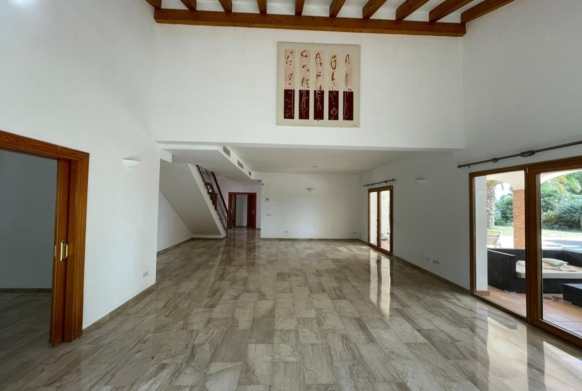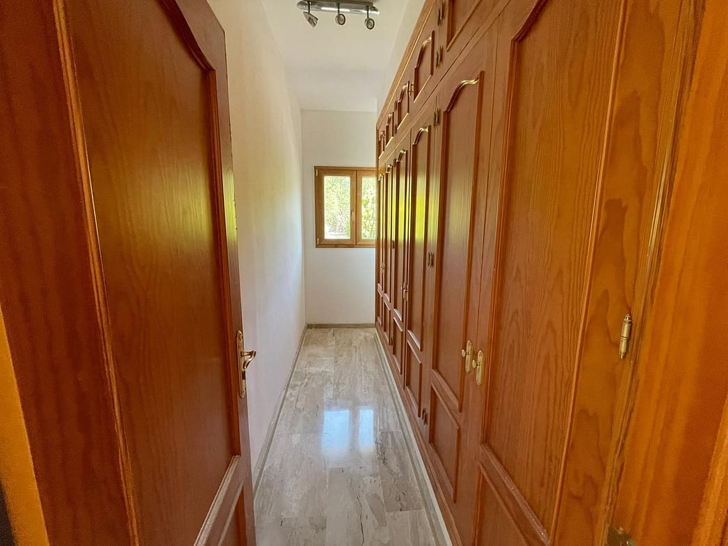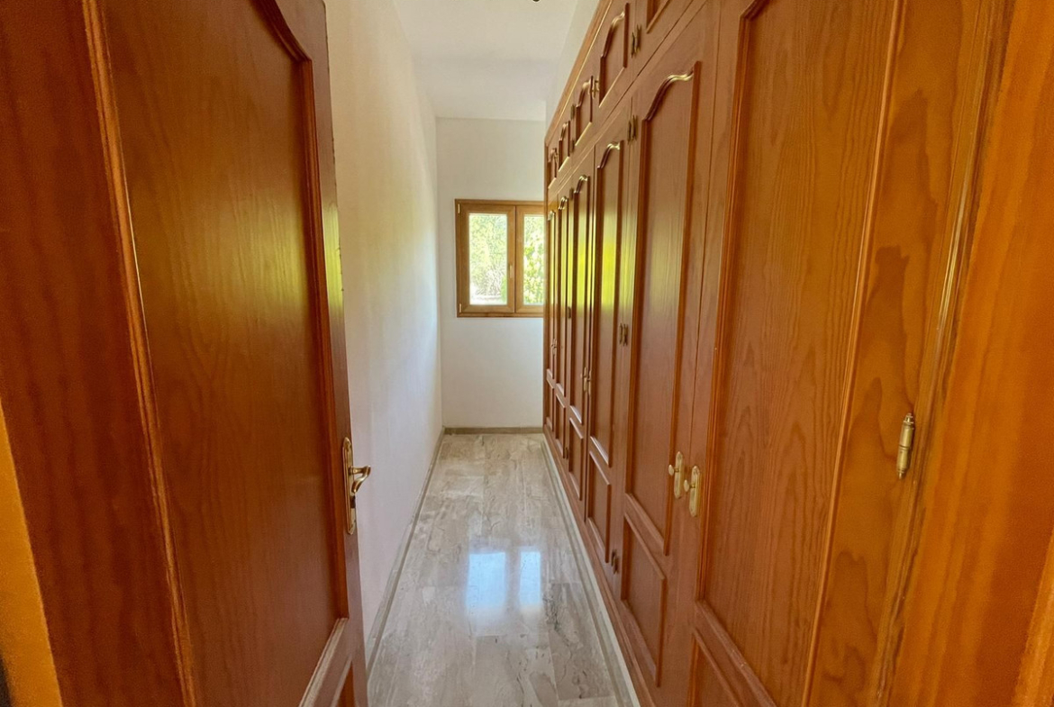 The villa is built across 463m2 with a plot of 2197m2. As you enter the front door, on the east wing there are 3 double bedrooms and 2 bathrooms, a separate kitchen and very sunny large lounge. The west wing has another double bedroom, bathroom and additional area for a second lounge or office. On the first floor there is a large master bedroom, dressing area and large en suite leading out to a very secluded separate terrace. The gardens are well maintained with many fruit trees, excellent sized pool and parking up to 10 cars, with the addition of a double garage. The property is all on the flat and has disable access. The kitchen needs renovating. And the property comes unfurnished. The owner is open to offers.