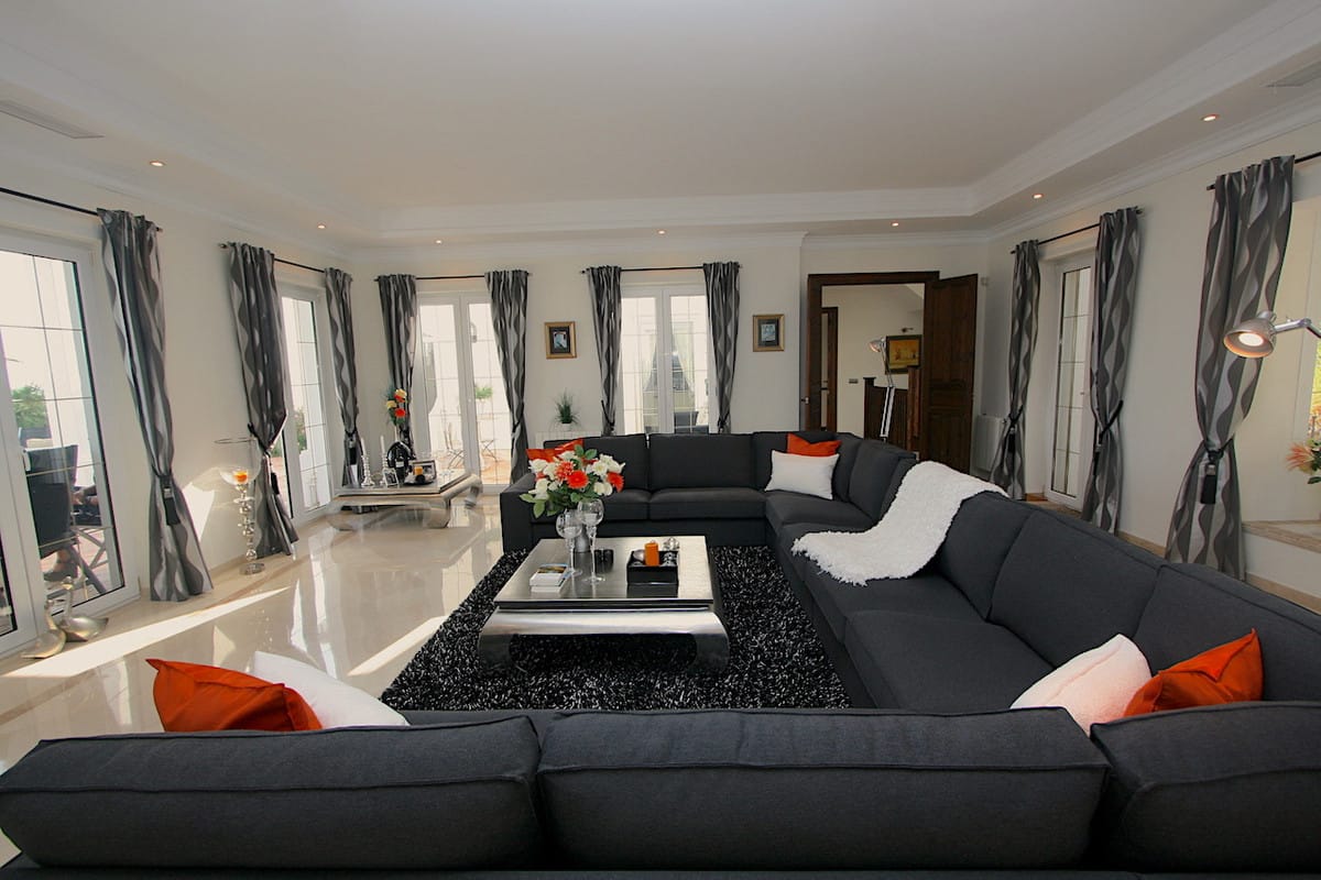 Spanning three levels, the villa’s thoughtful layout enhances its connection to the landscape. The main living floor features a bright lounge, stylish dining area, and a fully equipped kitchen — all opening onto a generous covered terrace with professional outdoor kitchen and barbecue, perfect for al fresco dining with a view. Overlooking the lush garden and shimmering private pool, this space invites effortless indoor-outdoor living.