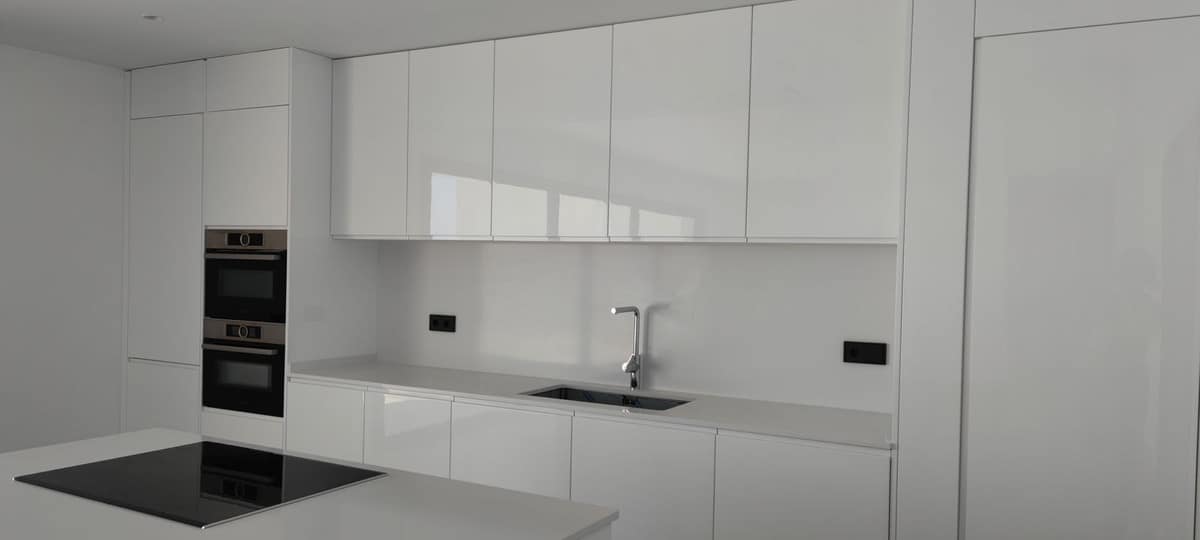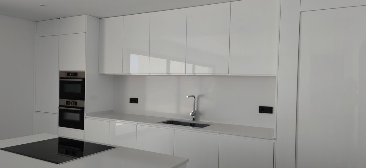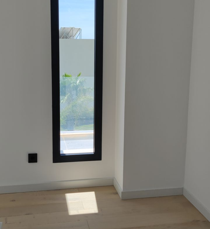 A bioclimatic design means that excellent high quality materials have been used, but at the same time with the aim of reducing consumption and thus protecting the environment. SALONI 90×90 ceramic floor tiles. Certified natural OAK wood parquet. TECHNAL aluminium carpentry, with thermal bridge break, double glazing with solar control, air chamber for cold/heat insulation and security glass. Lime paints, with smooth, opaque and water vapour permeable material, free of VOC (volatile organic compounds). Installation of SCHNEIDER electrical network and mechanisms. Double-flow mechanical ventilation system with enthalpic recuperator and aerothermal support with ambient temperature and humidity control. Bathroom cladding with MORTEX micro-mortar. Natural, ecological and breathable gypsum and cellulose fibre panels. GEBERIT bathroom fittings, TRES taps, home automation for lighting control and KNX blinds.