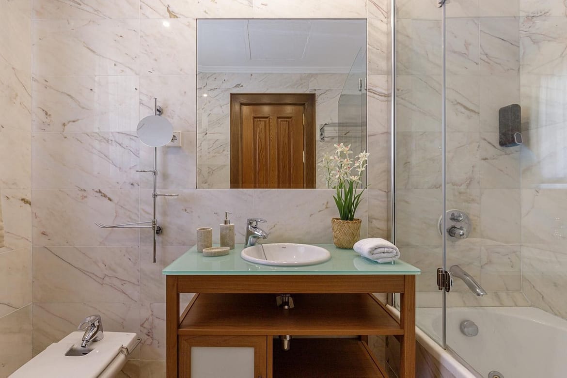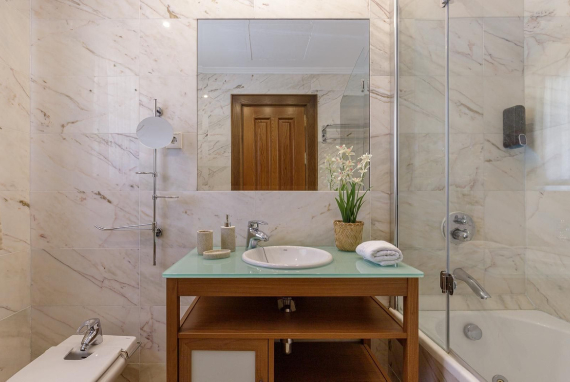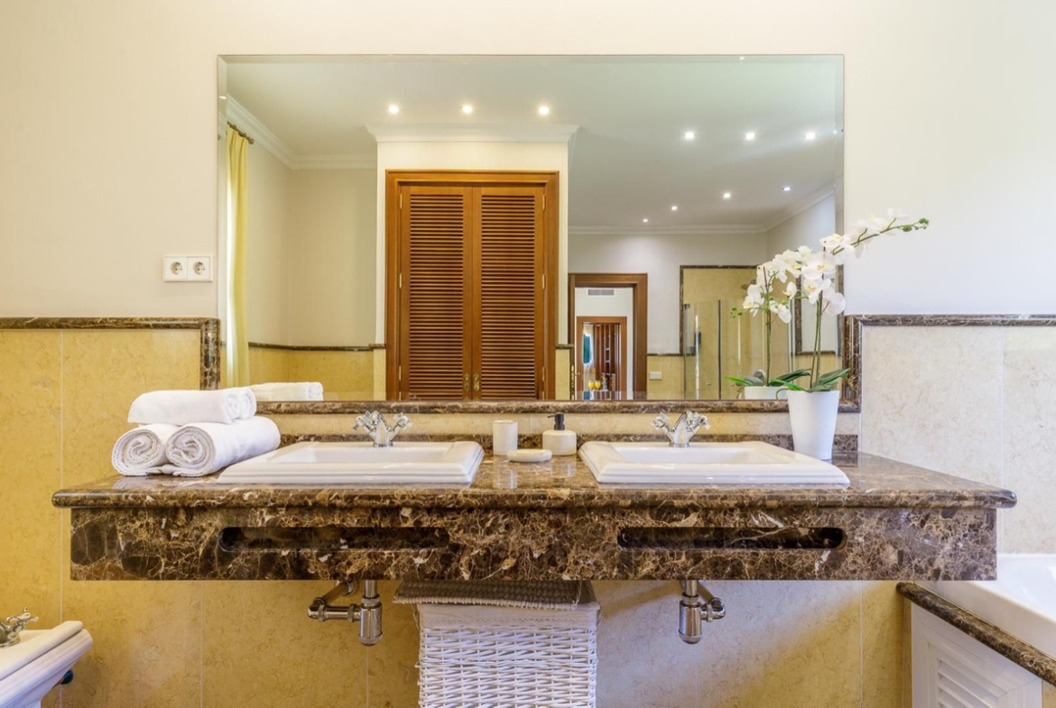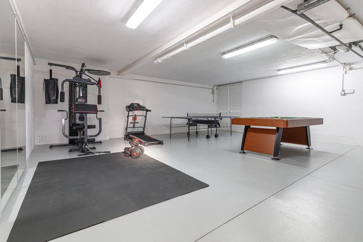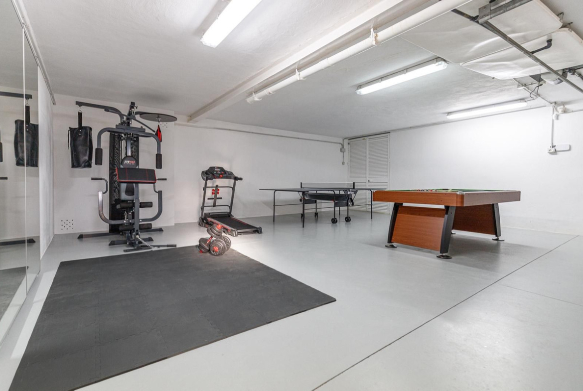 This large property has 5 bedrooms, 5 bathrooms, large living room – dining room, kitchen, games room and gym, private pool, garage for 2 cars and private garden.