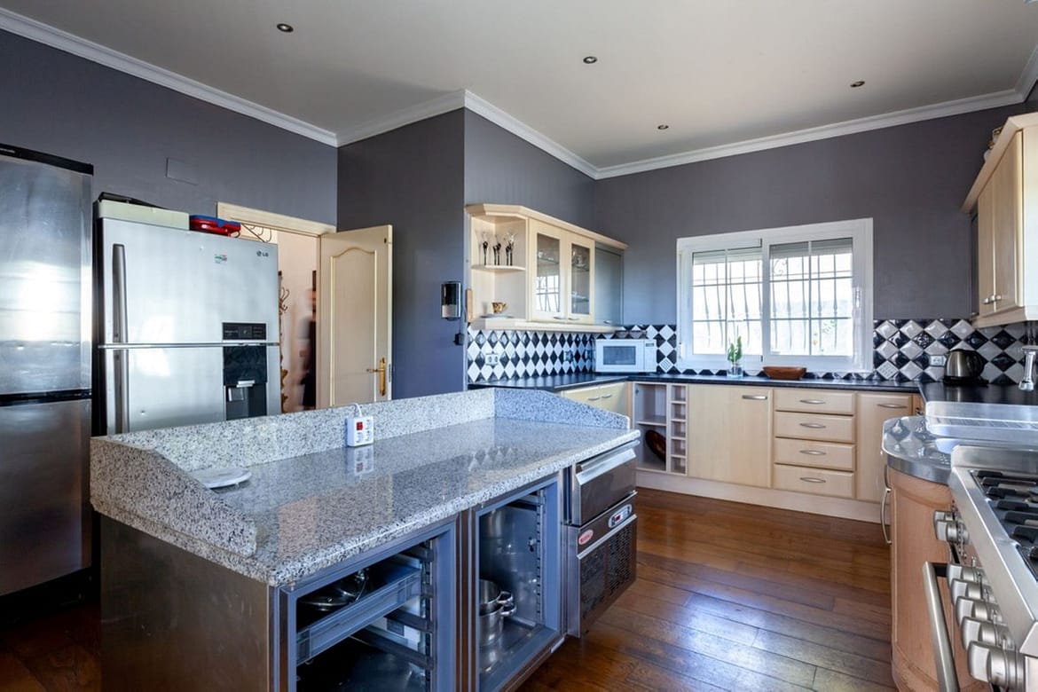 The ground floor comprises of a large living and dining room leading onto a huge covered terrace enjoying sun from sunrise until late evening, with splendid sea and valley views, a spacious very well equipped separate kitchen with large countertops and and large central island.