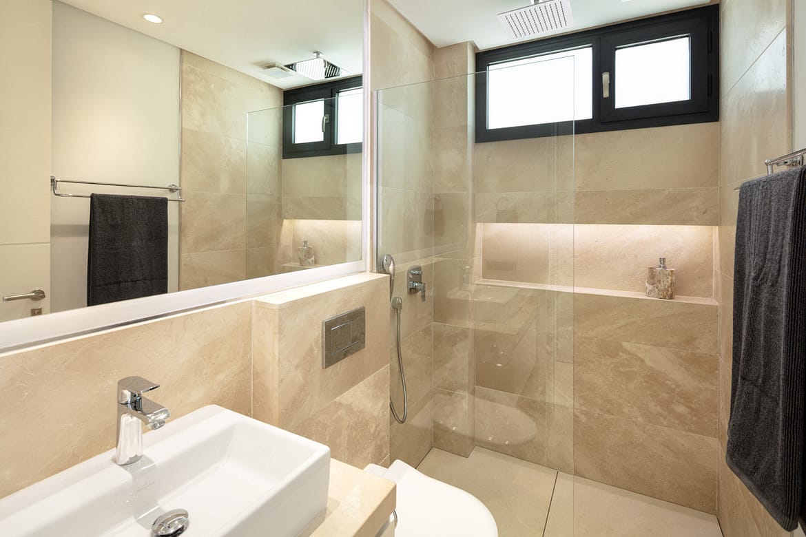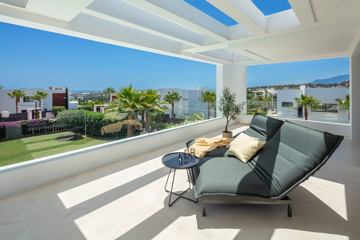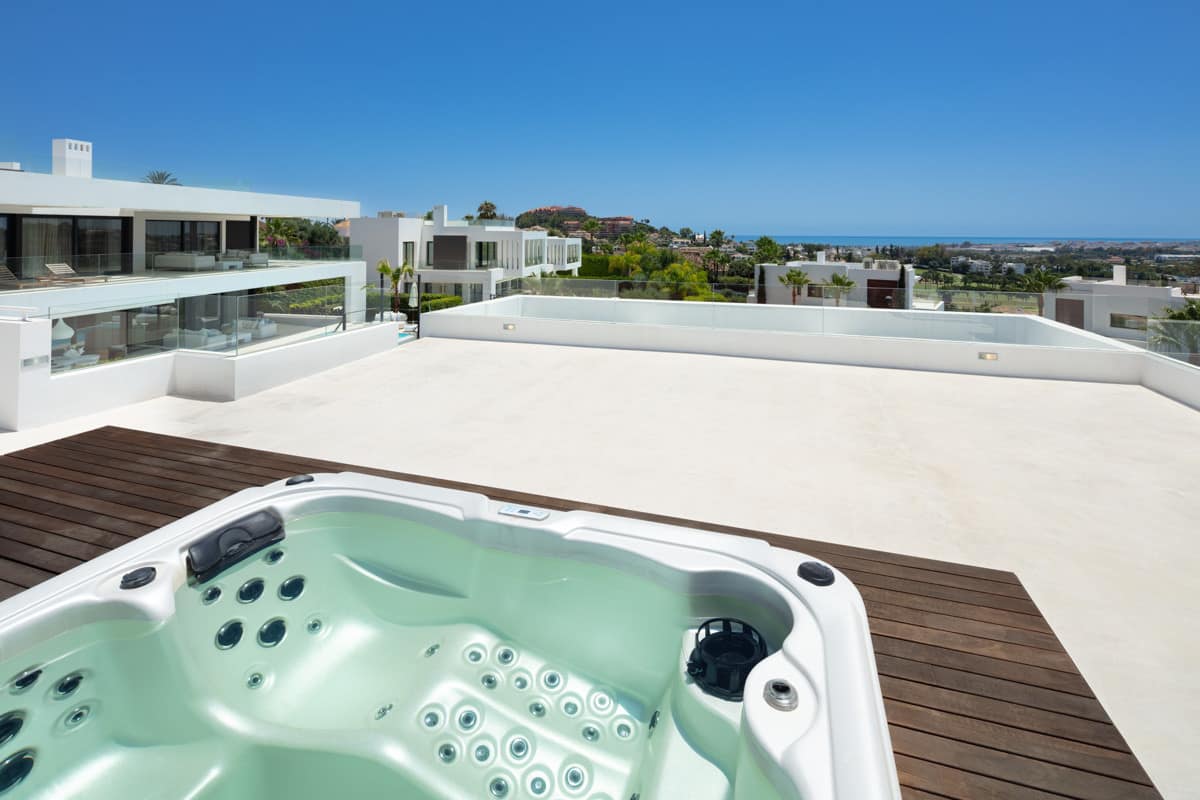 Brand-new contemporary luxury villa in a prestigious location in the famous Golf Valley, with the spectacular backdrop of Marbella’s iconic La Concha Mountain. Recently built to top specifications and finishes, this 6-bedroom villa pays special attention to the Andalusian climate, with plenty of outside seating areas carefully shaded and perfect for relaxing. Distributed on three levels, it comprises, on the main floor: spacious living room with several seating areas; open-plan fully fitted kitchen/dining area equipped with top appliances and with a central island and wine cooler; en-suite guest bedroom; access to the porches, terraces, swimming pool and the carefully landscaped garden with mature plants that surround the property create privacy from nearby homes. Upstairs: two guest en-suite bedrooms with fabulous views over the Golf Valley; stunning master suite with dressing room and a wrap-around terrace also enjoying the amazing views. Lower level: further guest bedroom with en-suite bathroom; garage for 2 cars. Possibility to add a gym on this level. Carport for 2 cars. Special features include underfloor heating in the bathrooms and home automation system throughout. Just minutes away from several international schools, world class golf courses, gastronomic experiences and amenities, this magnificent home is set within a quiet gated complex with 24-hour security, guaranteeing a total privacy.
