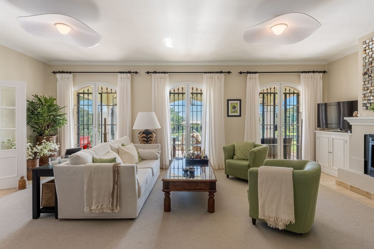 Spread across three light-filled levels, the villa offers elegant living spaces designed for comfort and entertaining. The grand double-height entrance hall leads to a bright living room with fireplace, an expansive kitchen with dining area, and a glass-enclosed terrace that serves as a year-round winter lounge. A guest bedroom and bathroom complete the ground floor.