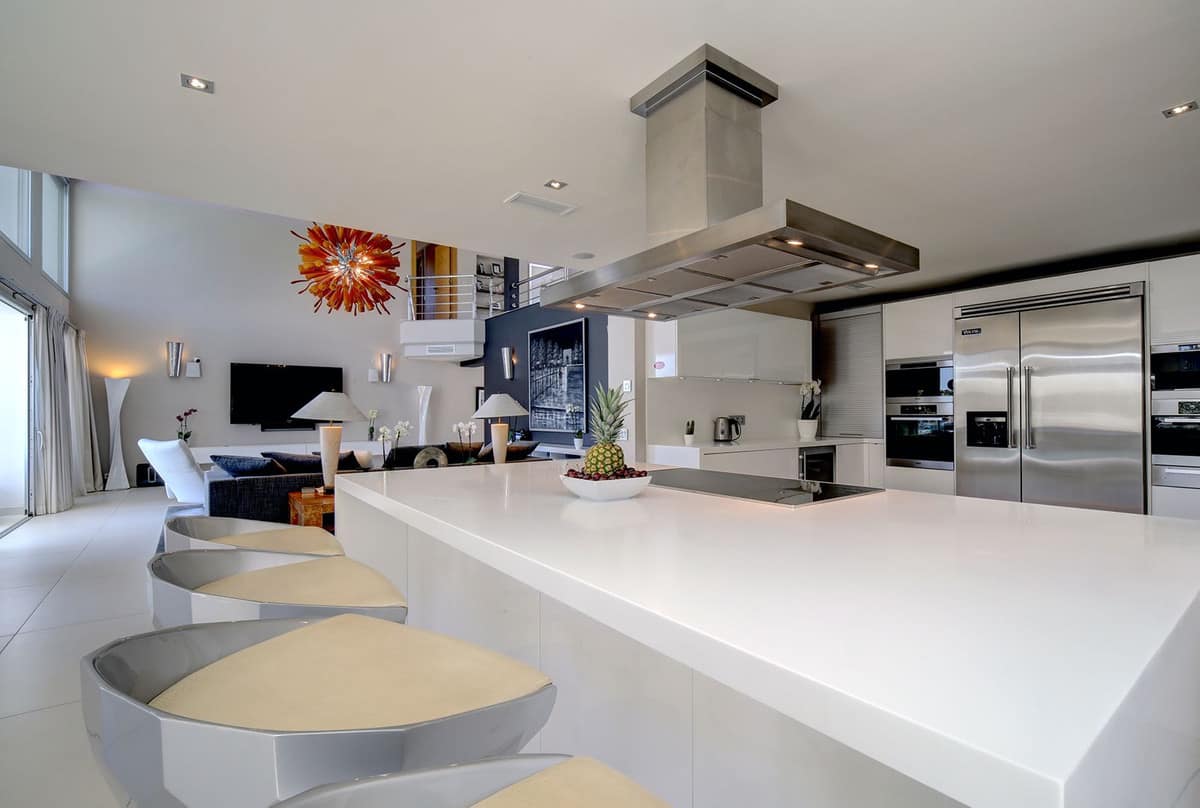 This stunning 5 bedroom villa is now for sale in the exclusive Golf Valley area of Nueva Andalucía. Nestled in a beautiful residential enclave overlooking the popular Los Naranjos Golf course, this modern villa is the epitome of chic living. Offering 5 large double bedrooms all with their own bathrooms, a gym, a fabulous cinema room, garage with parking for 2 cars and a further 4 car spaces outside, this villa really has it all. Spread out over three levels there are 2 bedrooms upstairs, 3 bedrooms on the ground floor and a gym, cinema room and laundry room downstairs. The main living area on the ground floor is made up of a beautiful and large, open plan modern kitchen with dining area that flows into the spacious sitting room, with its stunning double height ceilings, which in turn leads straight out onto the west facing terrace and pool area. Although this house is modern in style it has a lot of details that give it a character not often seen in modern villas. From the beautiful, wooden, double sized front door and the floor to ceiling glass of the sitting room, to the stunningly colourful Italian glass chandelier, and to the contrasting clean sharp lines of the kitchen, this villa is a clever mix of styles that lends a real warmth to this home.
