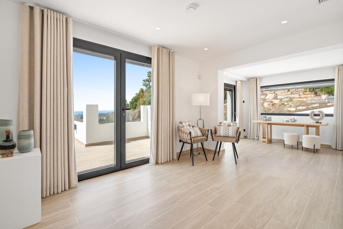 Just minutes from international schools, renowned golf clubs, and the marina of Puerto Banús, this residence combines architectural simplicity with frontal views, natural light, and a private setting.