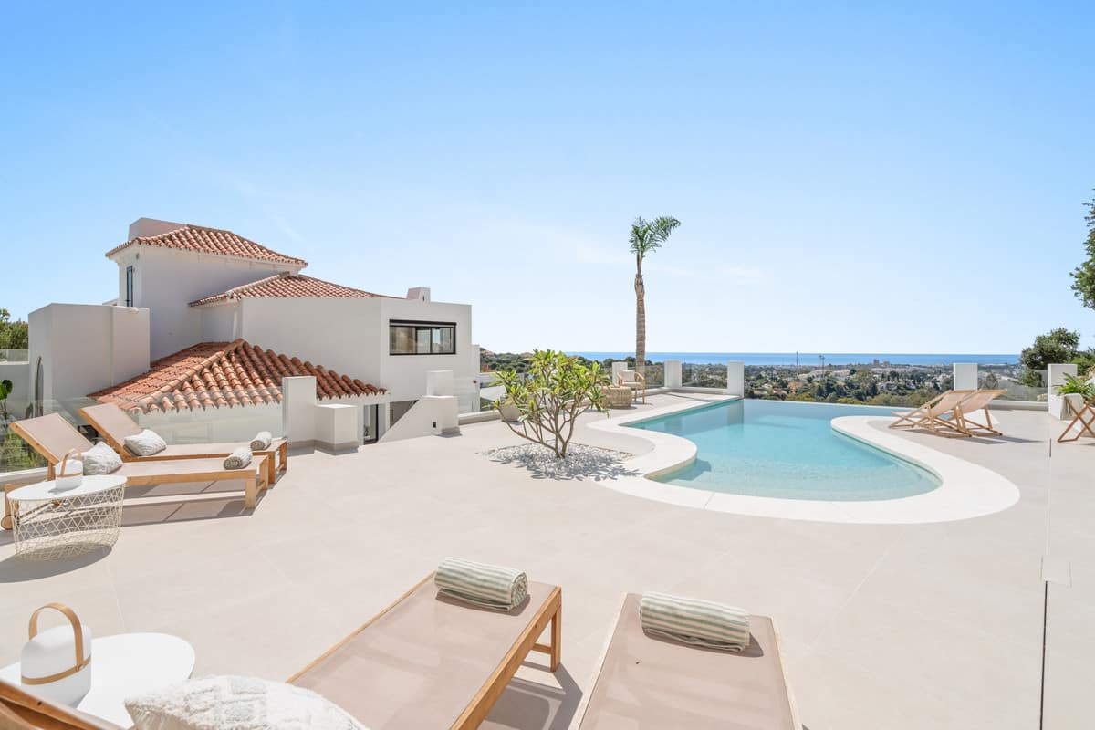 Located in one of Marbella’s most sought-after residential areas, this five-bedroom, five-bathroom villa offers panoramic, frontal views of the Mediterranean Sea, La Concha mountain, and Puerto Banús. Positioned on a 1,950 m² plot, the property includes 444 m² of interior space and more than 300 m² of terraces, designed to highlight volume, light, and privacy.