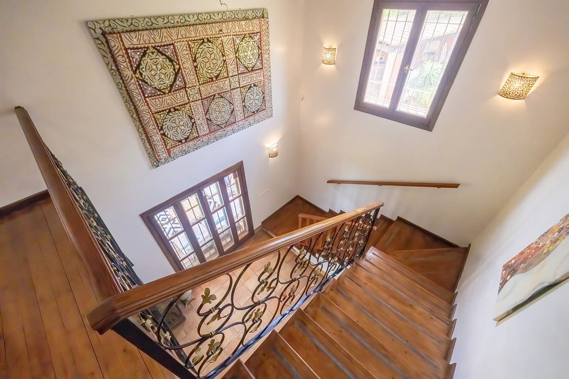 This Andalusian-style villa is located in a quiet and green area of Nueva Andalucía, next to Puerto Banús. Built on a 1,204 m² plot with a total living space of 506 m², the property offers 5 spacious bedrooms, 6 bathrooms, and 2 independent staff rooms, making it suitable for both family living and accommodating guests or household staff.