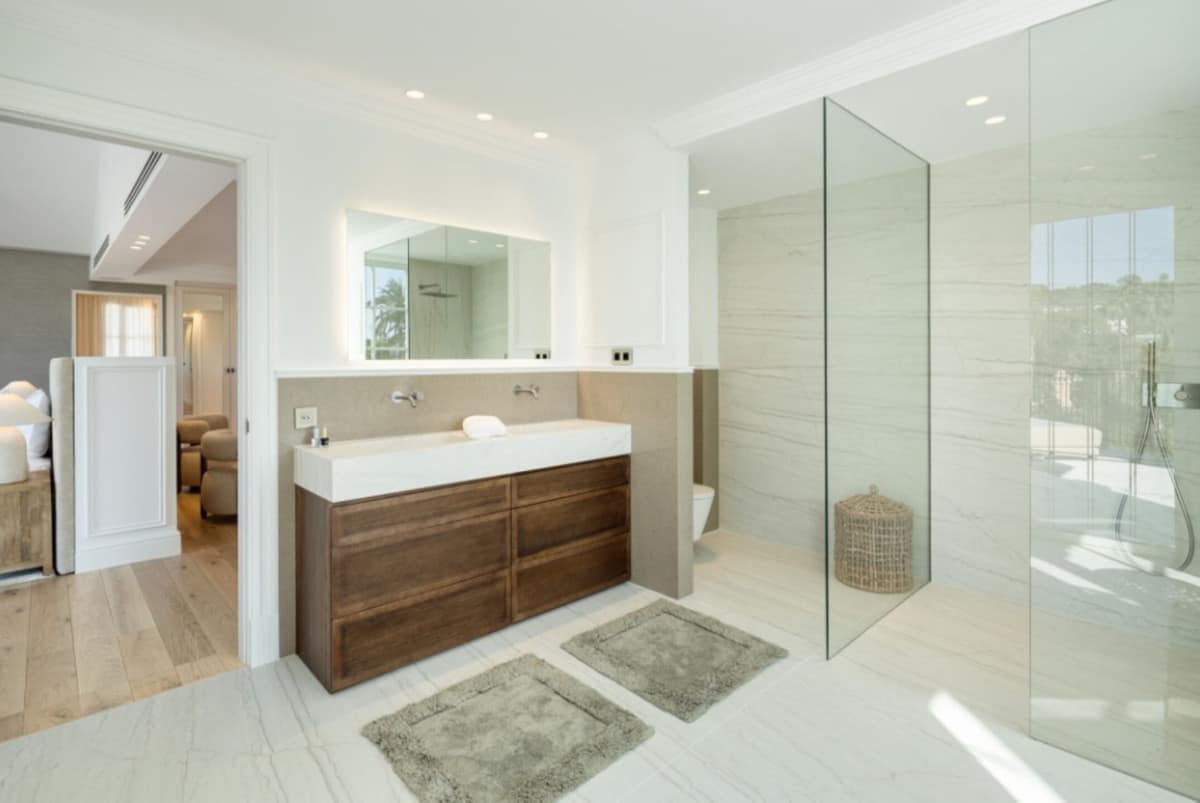 Each of the five generously sized bedrooms is a private sanctuary, complete with elegant en-suite bathrooms and access to terraces or private garden spaces, allowing for peaceful relaxation. The seamless flow between interior and exterior spaces invites effortless entertaining and year-round enjoyment of Marbella’s sunshine.