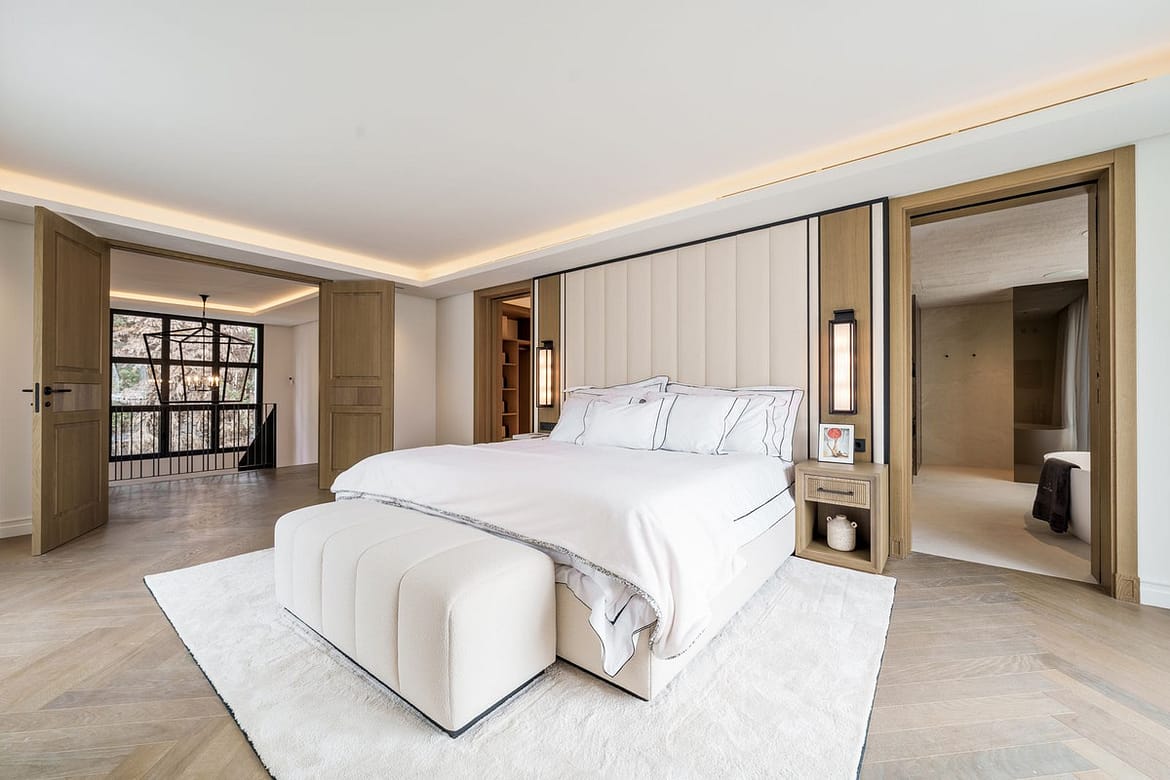 These include a huge garage, a driveway with a car turning plate, a spa with sauna and steam room, an state of the art indoor gym as well a home cinema – all with direct access to the garden.