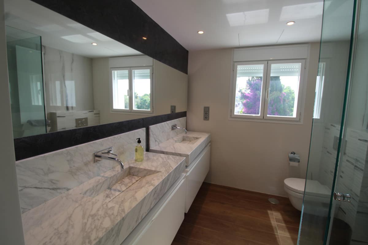 The villa build with high standard quality, has 5 bedrooms all en suite with full bathrooms, a spacious and luminous living room with direct access to the terrace that leads into the garden and the swimming pool. The property has a basement, special place for gym or games room, fully fitted large kitchen/utility room.