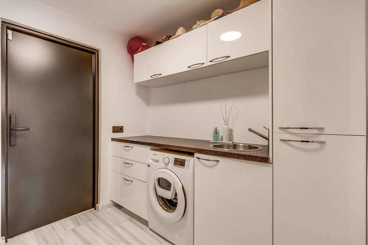 Upper Level: The master suite offers an en-suite bathroom and elegant design, ensuring a serene and private retreat. An additional en-suite guest bedroom is also located on this level, ideal for family or guests. Both bedrooms have balconies, allowing you to enjoy the views and Mediterranean climate. There is also a spacious terrace on this level.