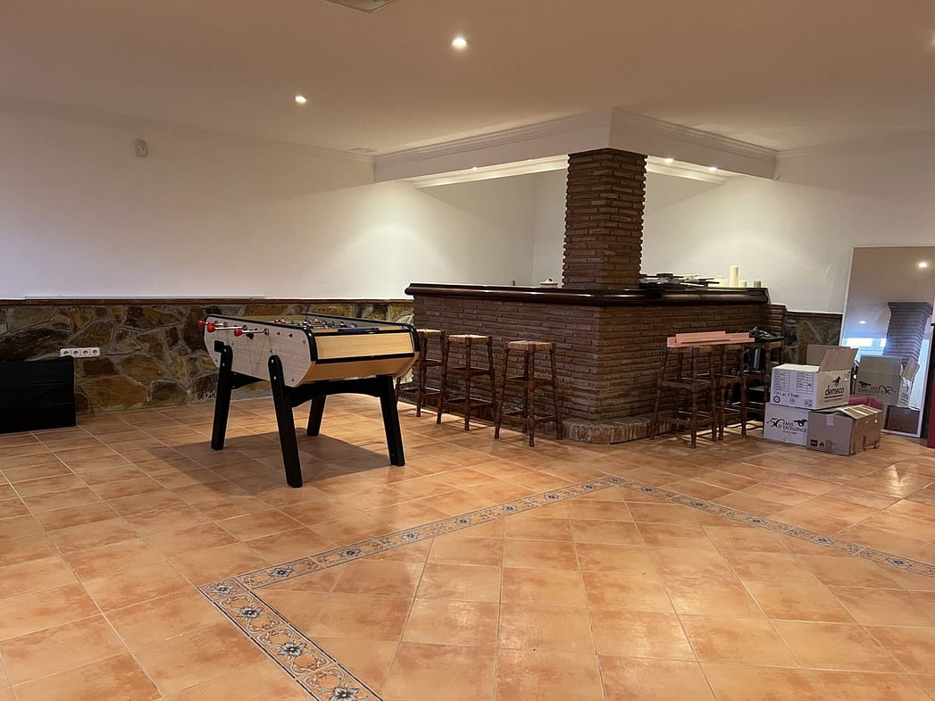 ✨ A basement entertainment area with a party room, wine cellar, bedroom, and toilet