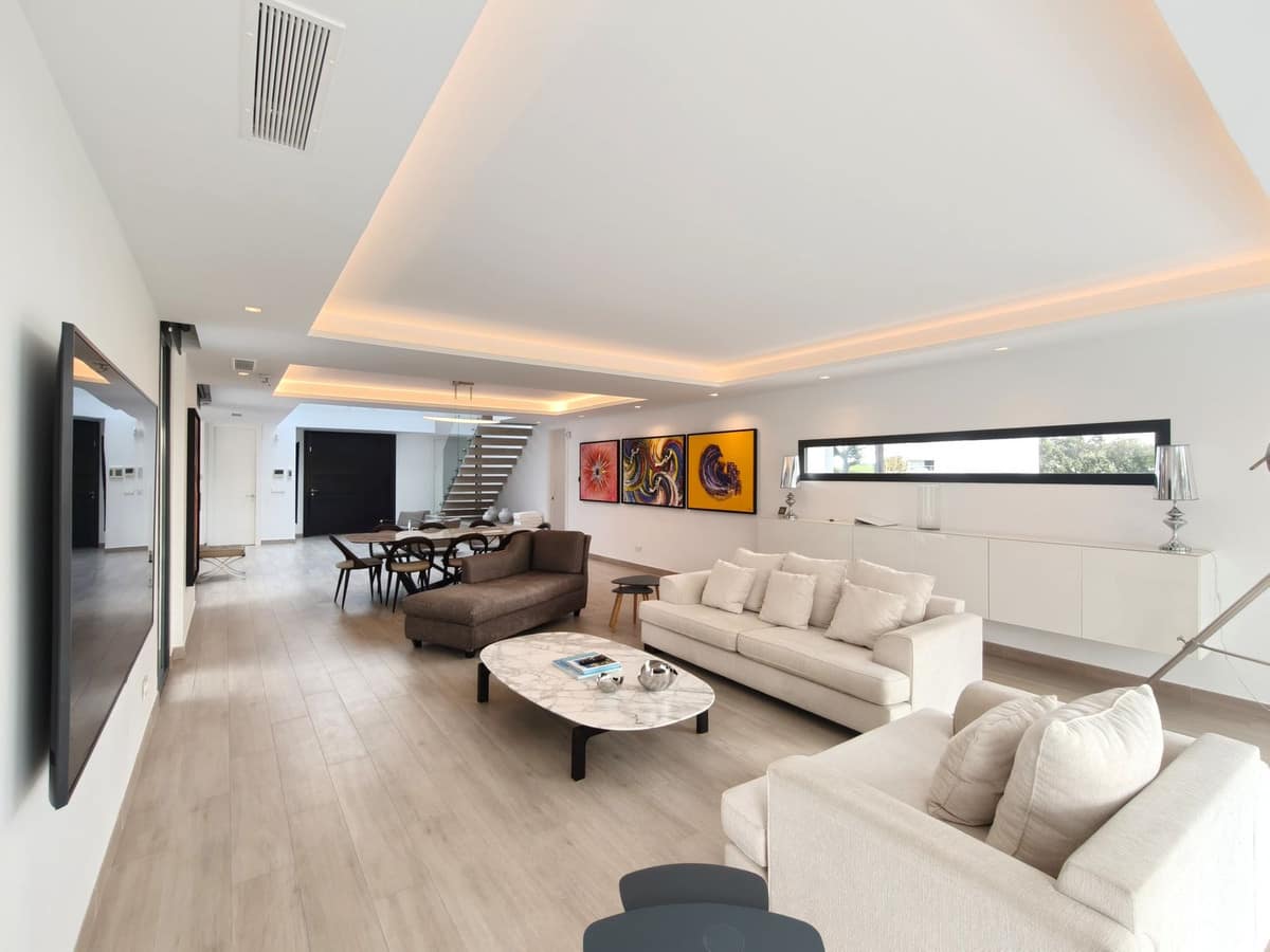 This exceptional contemporary villa enjoys a prime frontline position overlooking the prestigious San Roque Golf Course. Spanning three levels plus a rooftop solarium, it perfectly blends cutting-edge design, luxury finishes, and breathtaking views.