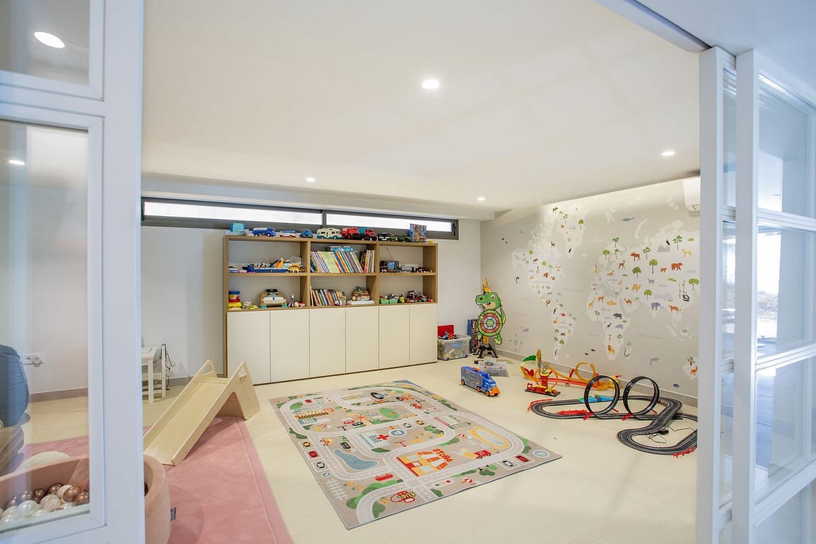 (4) Walking downstairs we have a totally renovated basement space that has been transformed into a fully equipped gymnasium with rest room, kids playroom / customisable space, home-cinema, storage areas and a laundry room.