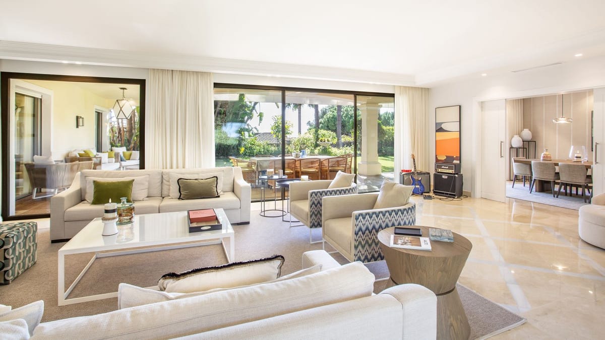 Located in the prestigious neighbourhood of Sierra Blanca just minutes from the Marbella Golden Mile, this renovated detached villa enjoys a totally private plot with sea and La Concha mountain views.