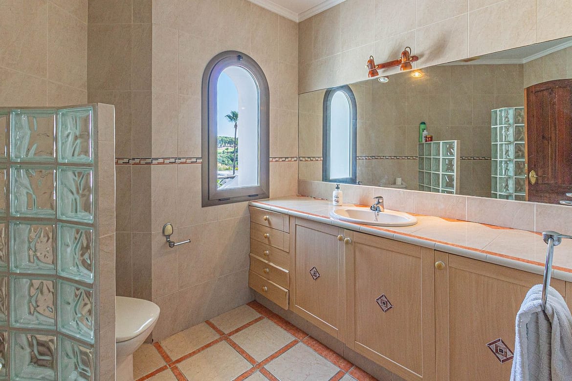 As you make your way upstairs, you will discover a bright master bedroom that will become your personal retreat. With a large dressing room and en-suite bathroom, this space is ideal for relaxing after a long day. The spacious terrace off the master bedroom offers spectacular views of Sotogrande, a privileged corner where you can enjoy moments of peace and beauty. On this floor, you will also find another terrace, two additional bedrooms and a complete bathroom, designed to offer maximum comfort.