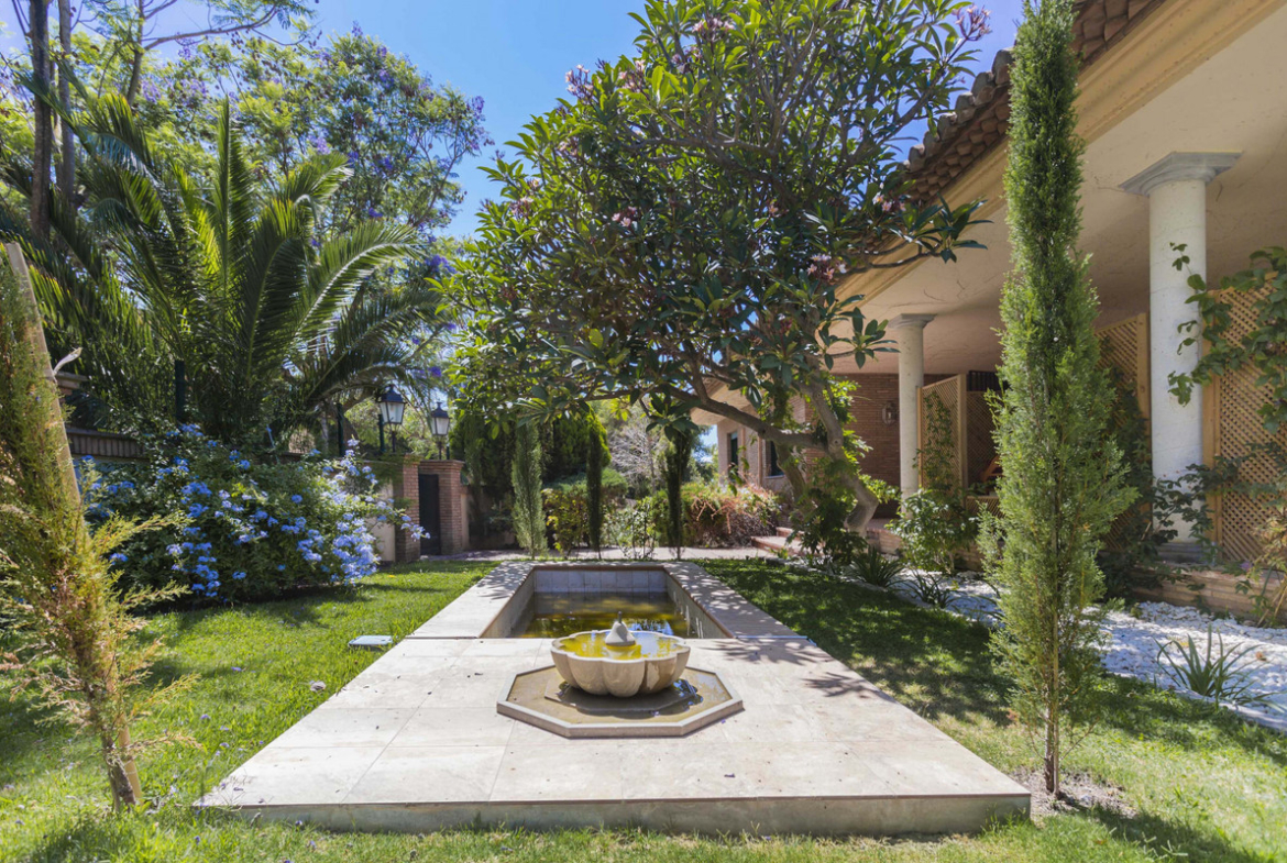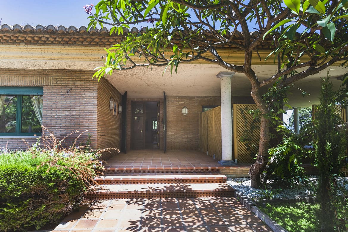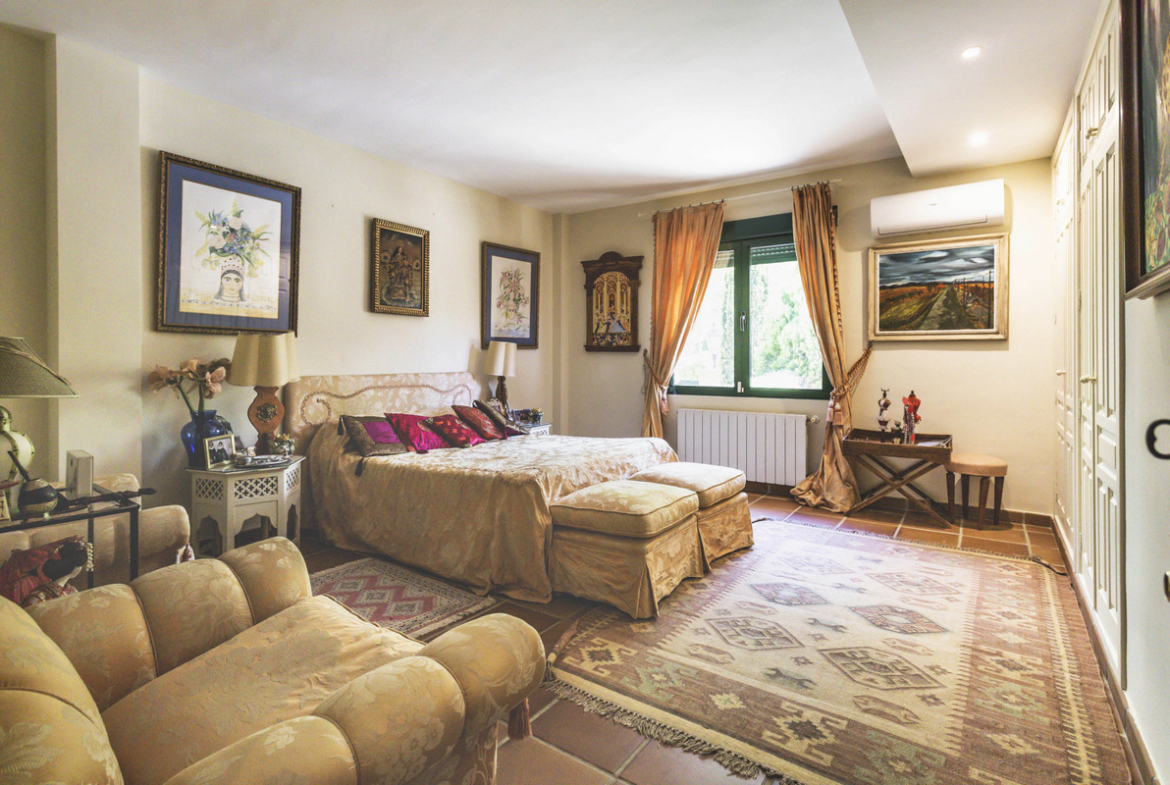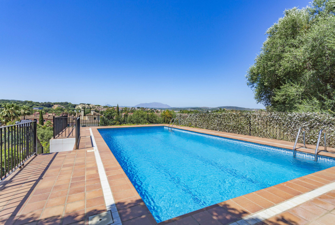 Detached two-story villa in the coastal area of Sotogrande. On the first floor, we find a spacious entrance hall leading to 3 large bedrooms, a kitchen, and a living room. The bedrooms have en-suite bathrooms, while another is located in the hallway. The kitchen has a pantry and a separate toilet. The bright living room opens onto a spacious L-shaped porch, which overlooks the garden and a gazebo with views of the pool and the mountains. From the entrance hall, there is also access to the lower floor, a separate area with 2 bedrooms and 2 bathrooms, as well as a kitchenette integrated into a living area with a fireplace. This floor is ideal as an independent apartment, as it also has access through the garden or garage (with capacity for 4 cars). The garden has a charming and modern bathroom with a shower, perfect for use when swimming in the pool. Air conditioning and central heating are available. The property is conveniently located, a 5-minute drive from supermarkets and the Paniagua shopping center, and is also a very quiet area. The property was partially renovated in 2024.