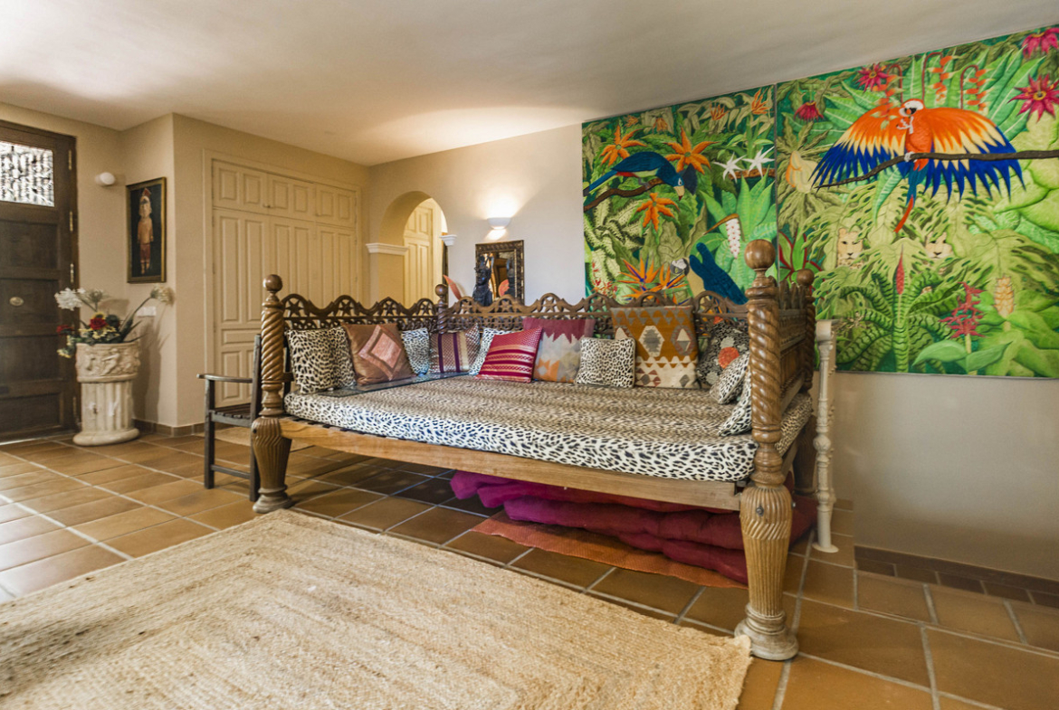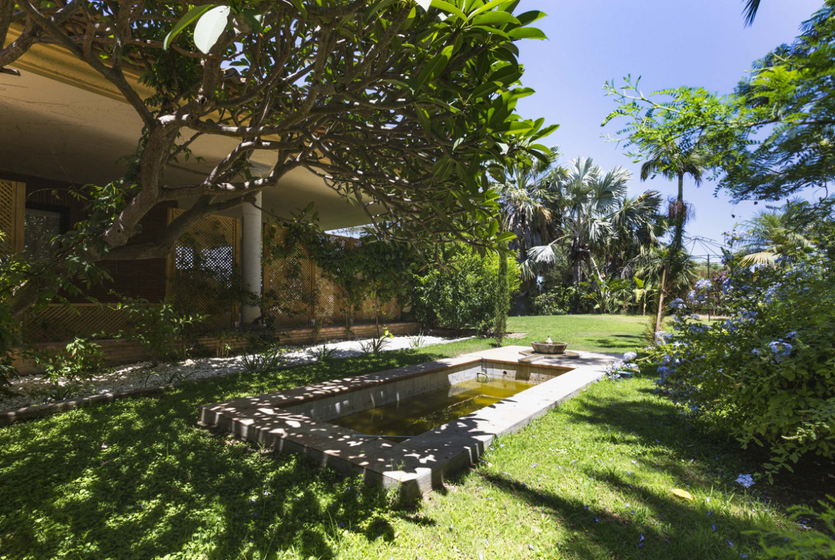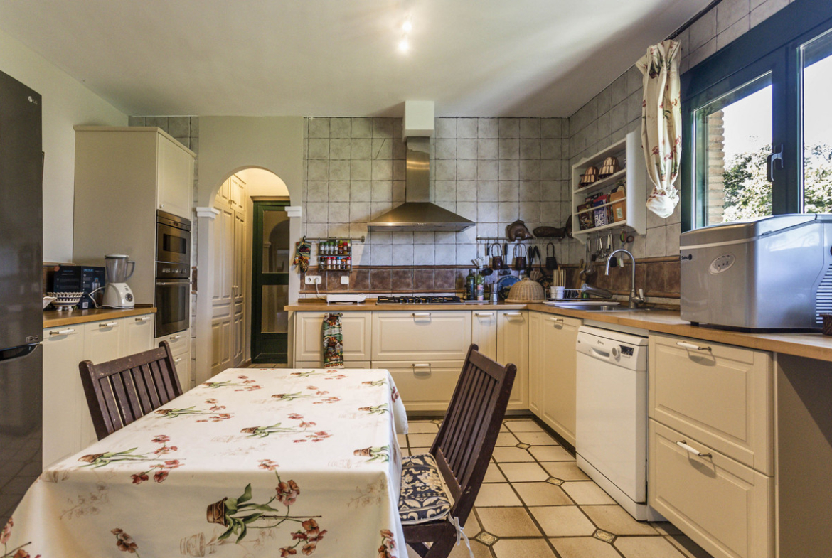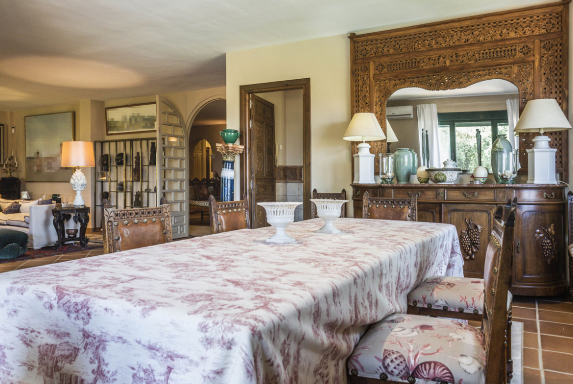 Detached two-story villa in the coastal area of Sotogrande. On the first floor, we find a spacious entrance hall leading to 3 large bedrooms, a kitchen, and a living room. The bedrooms have en-suite bathrooms, while another is located in the hallway. The kitchen has a pantry and a separate toilet. The bright living room opens onto a spacious L-shaped porch, which overlooks the garden and a gazebo with views of the pool and the mountains. From the entrance hall, there is also access to the lower floor, a separate area with 2 bedrooms and 2 bathrooms, as well as a kitchenette integrated into a living area with a fireplace. This floor is ideal as an independent apartment, as it also has access through the garden or garage (with capacity for 4 cars). The garden has a charming and modern bathroom with a shower, perfect for use when swimming in the pool. Air conditioning and central heating are available. The property is conveniently located, a 5-minute drive from supermarkets and the Paniagua shopping center, and is also a very quiet area. The property was partially renovated in 2024.