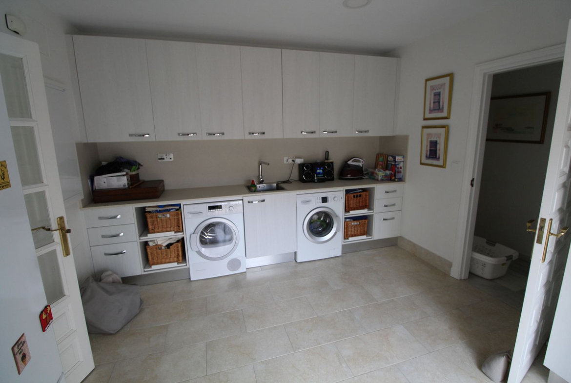 On the ground floor there is a spacious living room with an adjoining dining room and fireplace, a huge fully equipped kitchen with pantry and access to the laundry room, 4 large bedrooms with en-suite bathrooms and a beautiful Moorish style tea room with fabulous tiles and Nasrid friezes. From the living room you can access a large covered terrace that serves as a dining room and chillout area overlooking the garden and pool. Next to the pool there is a barbecue area with a pergola and hammocks, perfect for the summer.