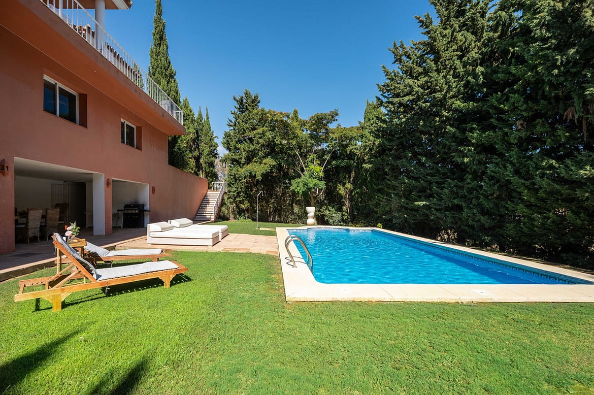 Welcome to Villa Indira. A spacious 509 m² villa located in the prestigious Zona B of Sotogrande. The property sits on a private 1,125 m² plot and offers 5 bedrooms, 4 bathrooms, a secluded garden, a large swimming pool, and a carport. Built in a classic Andalusian style, the villa has authentic charm and character. With some updating, it holds the potential to become a truly spectacular family home in one of Southern Spain’s most exclusive communities.