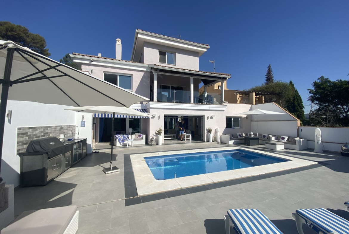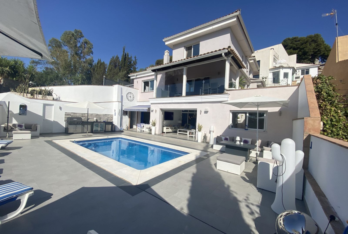 Stunning villa in the hills above Torremolinos yet only 5 mins to the beach and town. Great party and entertaining house with pool side indoor and outdoor kitchen. Sea views from lounge and bebrooms. Very rare does a house of this quality come for sale in this area.