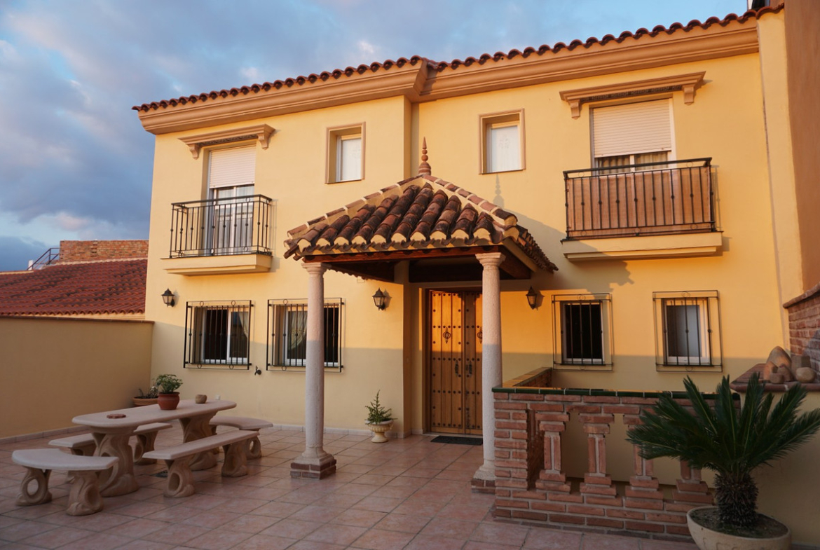 This is a spacious villa in Velez Malaga. It is only 250m from the courthouse, it is close to shops, restaurants, pharmacies and schools. You can access everything on foot. The house is divided into 4 floors. At the entrance of the house, we find a large outdoor patio. When we enter we find a large kitchen with a dining room on the right hand side. The kitchen is fully equipped. It enjoys a lot of natural light. On this floor there ́s also a guest bathroom. From this floor we also have access to the private swimming pool which has a large patio where you can enjoy the sun or a nice barbecue in summer. Also, on this floor there is a laundry room. Upstairs we find the bedrooms. There are 2 bedrooms, each one with a built-in wardrobe. There is a spacious bathroom, with a large bathtub and two sinks. There ́s also the master bedroom on this floor. On the ground floor there is a large living room, with a fireplace. On this floor there is also a bathroom and a small outdoor patio. In addition, there are 2 bedrooms, which are currently used as an office and a dressing room. Going down basement we find the garage and the storage room. It also has a small toilet. It also has a wine cellar and a small bar. We are pleased to be able to present this dream property to you soon, either personally or via virtual viewing. Because this world, it is unique – just like our Axarquía. In Andalusia. On the Costa del Sol. Here, on the sunny side of life…