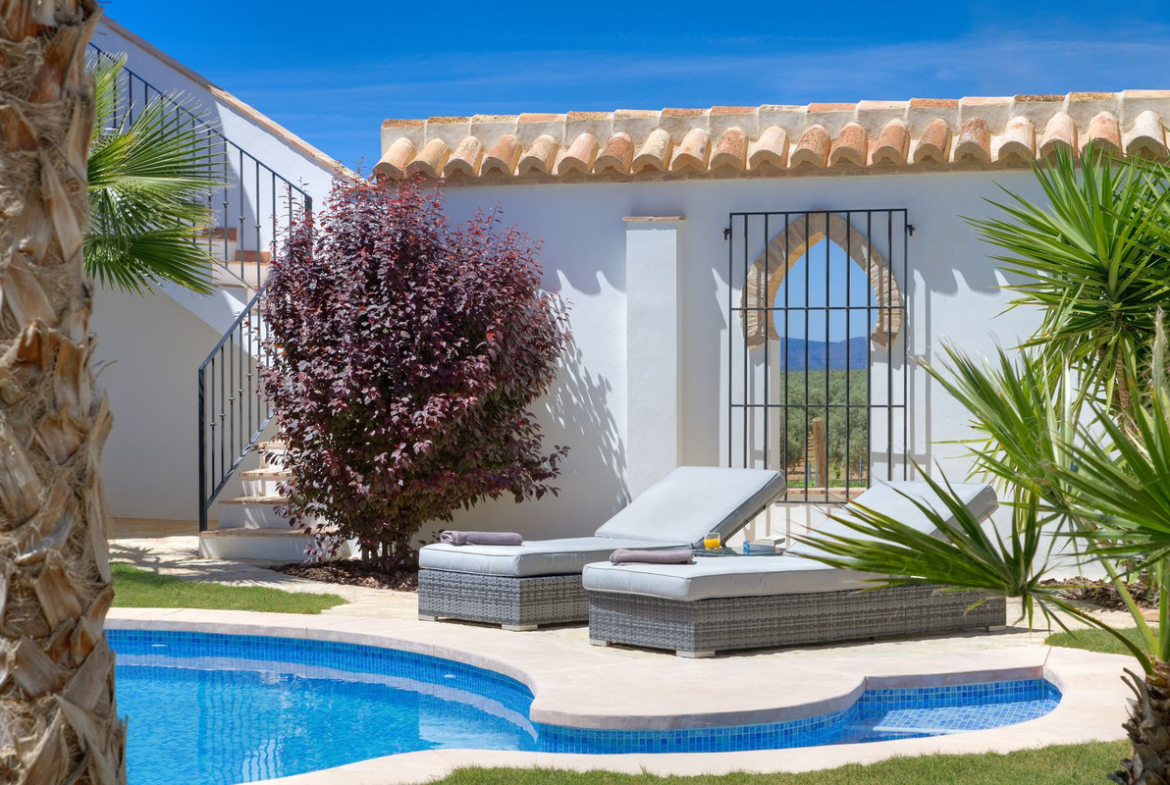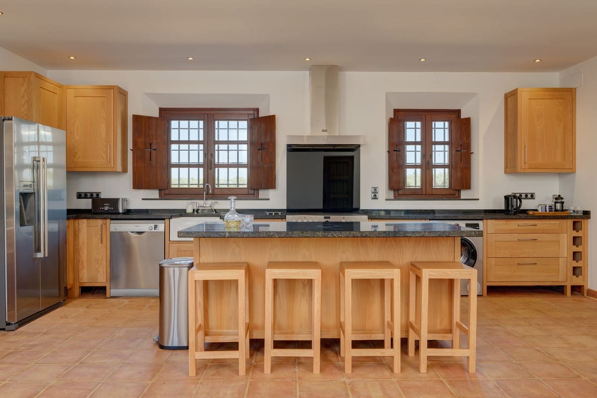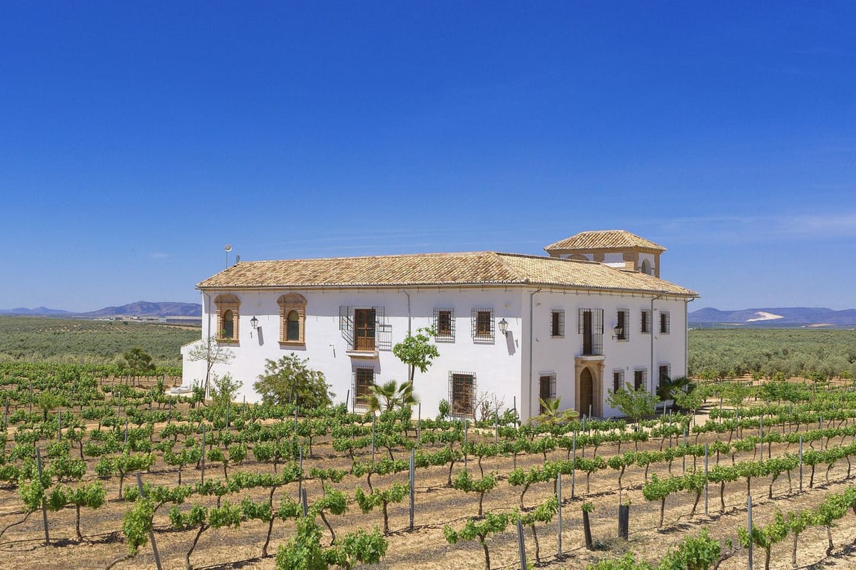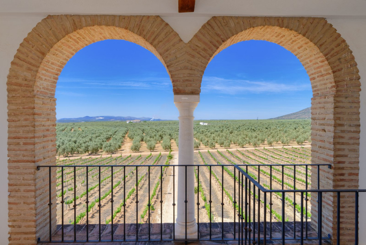Upstairs, four sumptuous bedrooms, each with their own en-suite bathrooms, provide an intimate retreat, with breathtaking views of the vineyard below. Every room is appointed with high-end finishes, blending traditional Andalusian charm with modern luxury.