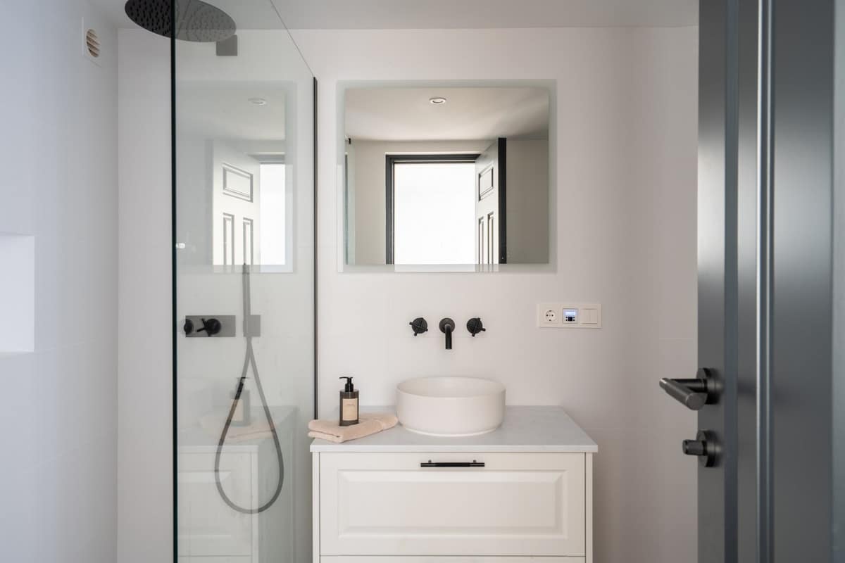 A separate studio with its own bathroom offers endless possibilities—as staff accommodation, a guest house, private office, or creative retreat. Every detail has been carefully renewed, from the underfloor heating with Daikin heat pump to the individual air-conditioning, wooden-effect tiles, Villeroy & Boch bathrooms, Tres fixtures, and the Vela bathtub. The home is equipped with double-glazed aluminum windows, a fully automated home and surveillance system, and brand-new plumbing and electricity, all connected to mains services.