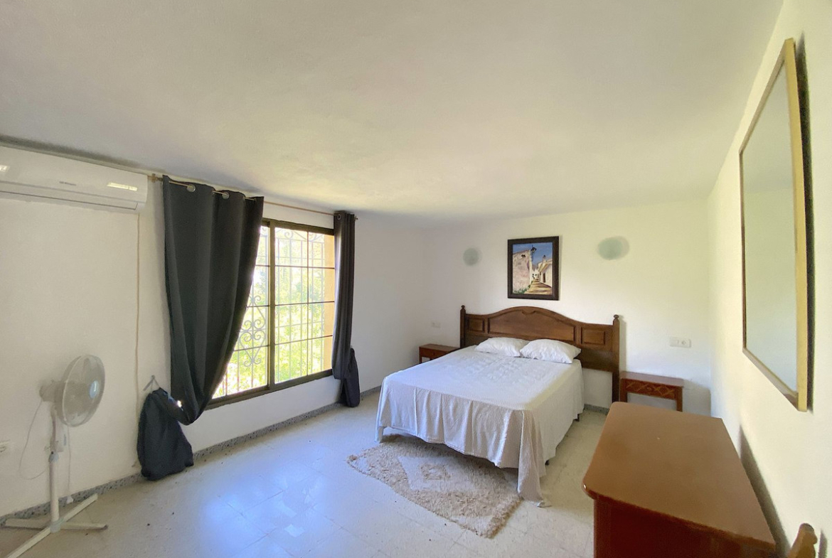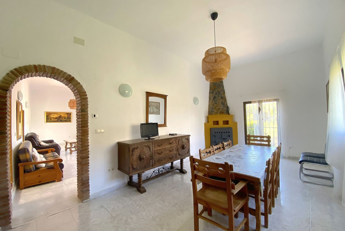 Investment opportunity! Authentic Andalusian finca near Mijas Pueblo. The robust finca has a south orientation, offering on the ground floor three bedrooms, two bathrooms, a spacious living room with a fireplace, a separate dining area with another fire place, a fully fitted kitchen with a separate laundry/utility room and an office space. Below there is a separate guest apartment with a bedroom and a bathroom, the second room can be a sitting area or another bedroom. Both rooms have a south-west orientation with views to the green area around the property. The property has an east-facing patio and a private garden with pool. There is also a water well. This charming property was build in 1967 and is in need of some renovation. Very interesting is that the property comes with a 21.000 m2 plot. There is the possibility to build stables as you can keep horses here. It is also urban land so it is possible to build more properties on the land. The plot is easy accessible and just a few minutes drive to the picturesque white village of Mijas. Must be seen!