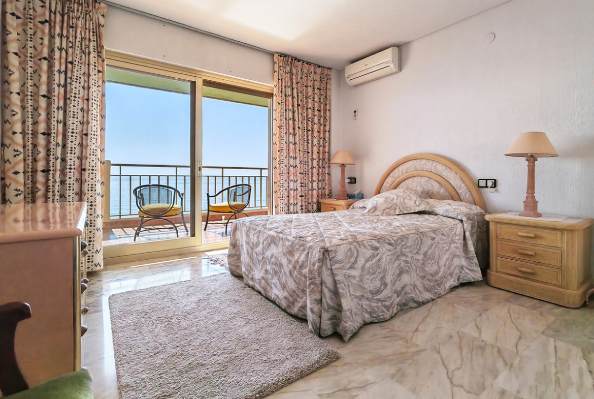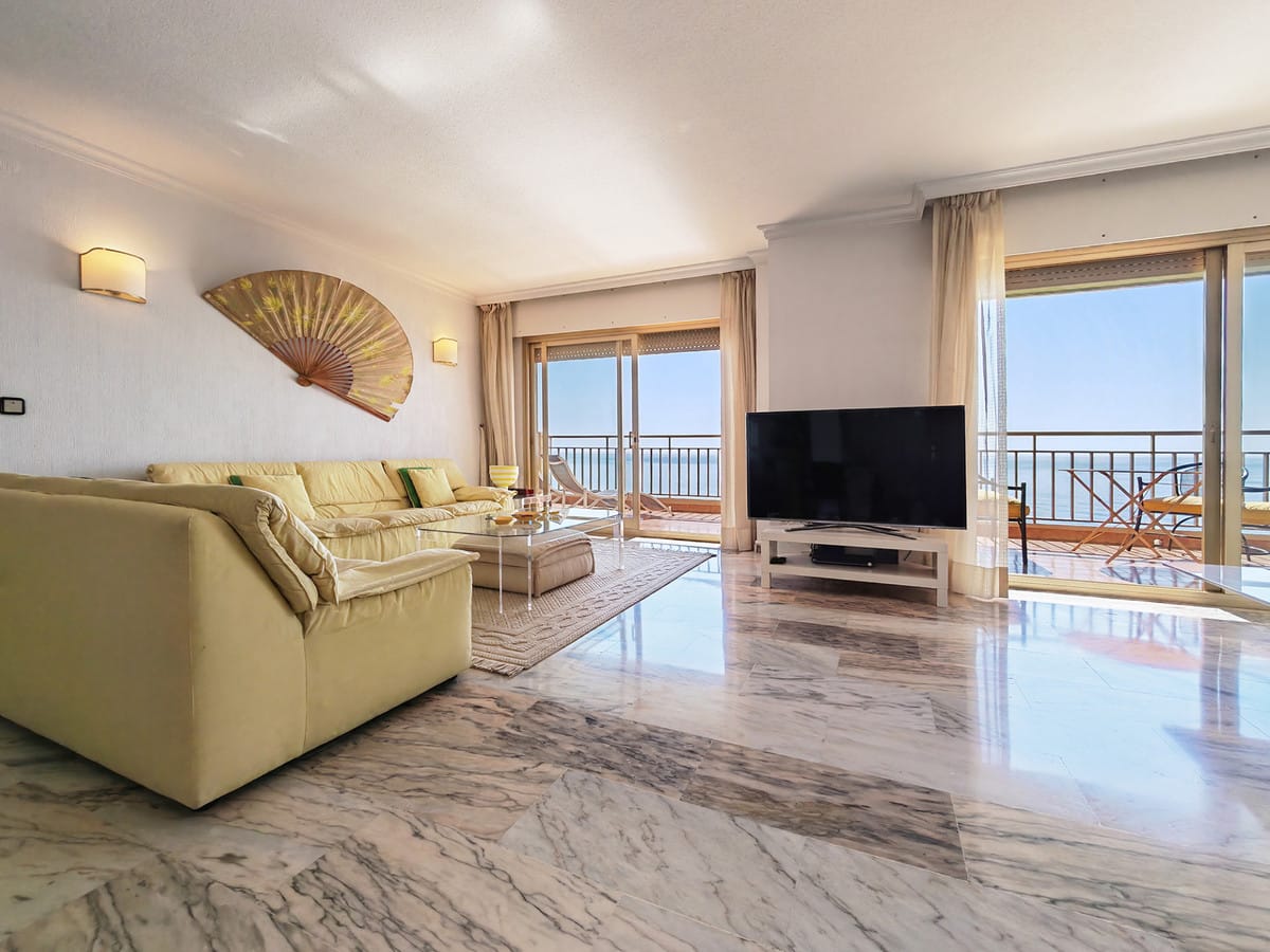 Apartment for sale in , Fuengirola with 5 bedrooms, 4 bathrooms and with orientation south, with communal swimming pool and communal garden. Regarding property dimensions, it has 260 m² built and 50 m² terrace. Has the following facilities front line beach, amenities near, transport near, air conditioning, partly furnished, fully fitted kitchen, guest room, security entrance, video entrance, dining room, private terrace, kitchen equipped, living room, sea view, laundry room, covered terrace, fitted wardrobes, gated community, lift, tennis / paddle court, beach side, close to sea / beach, balcony, wheelchair-accessible, good condition, close to shops, close to town and close to port.