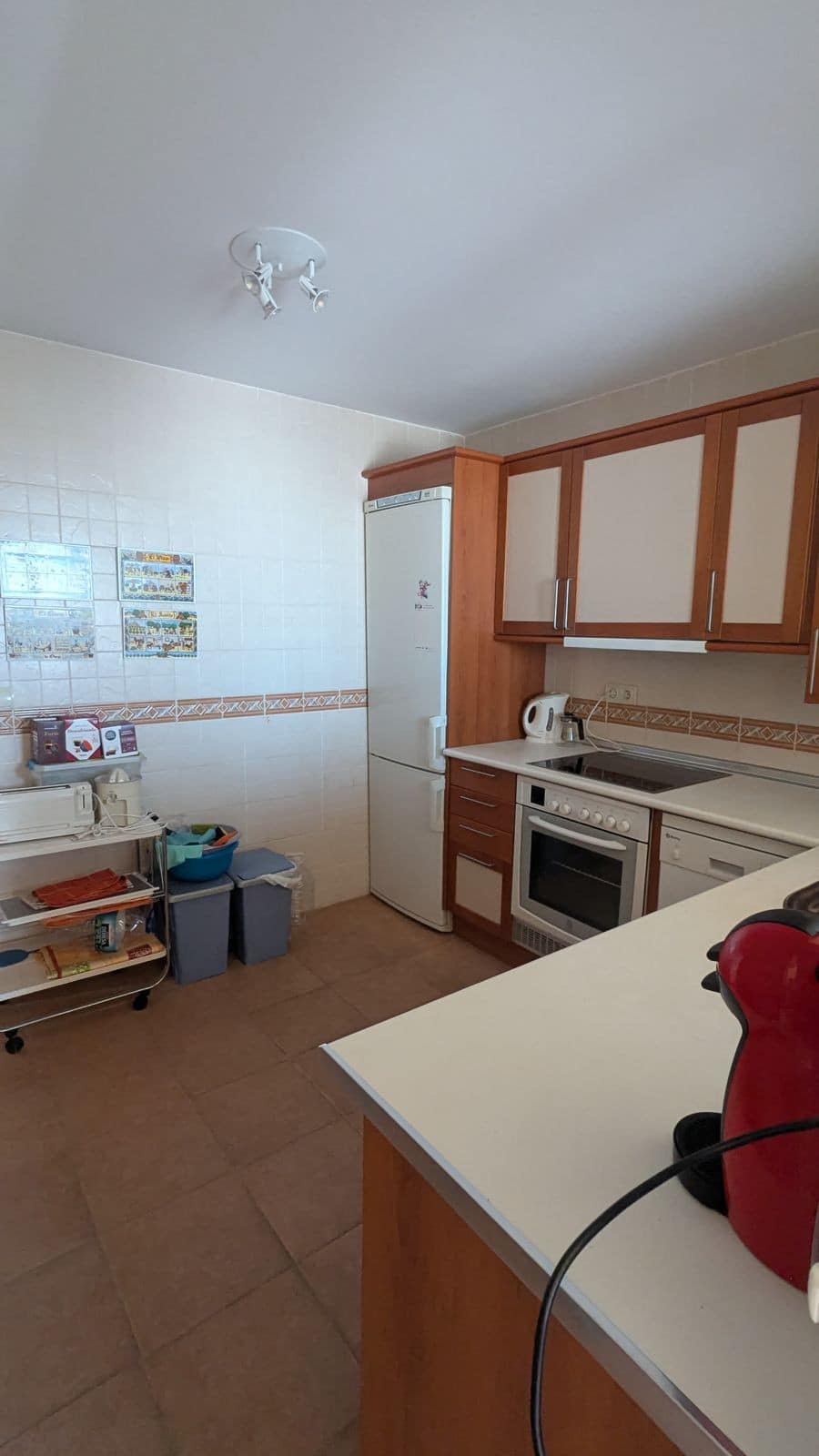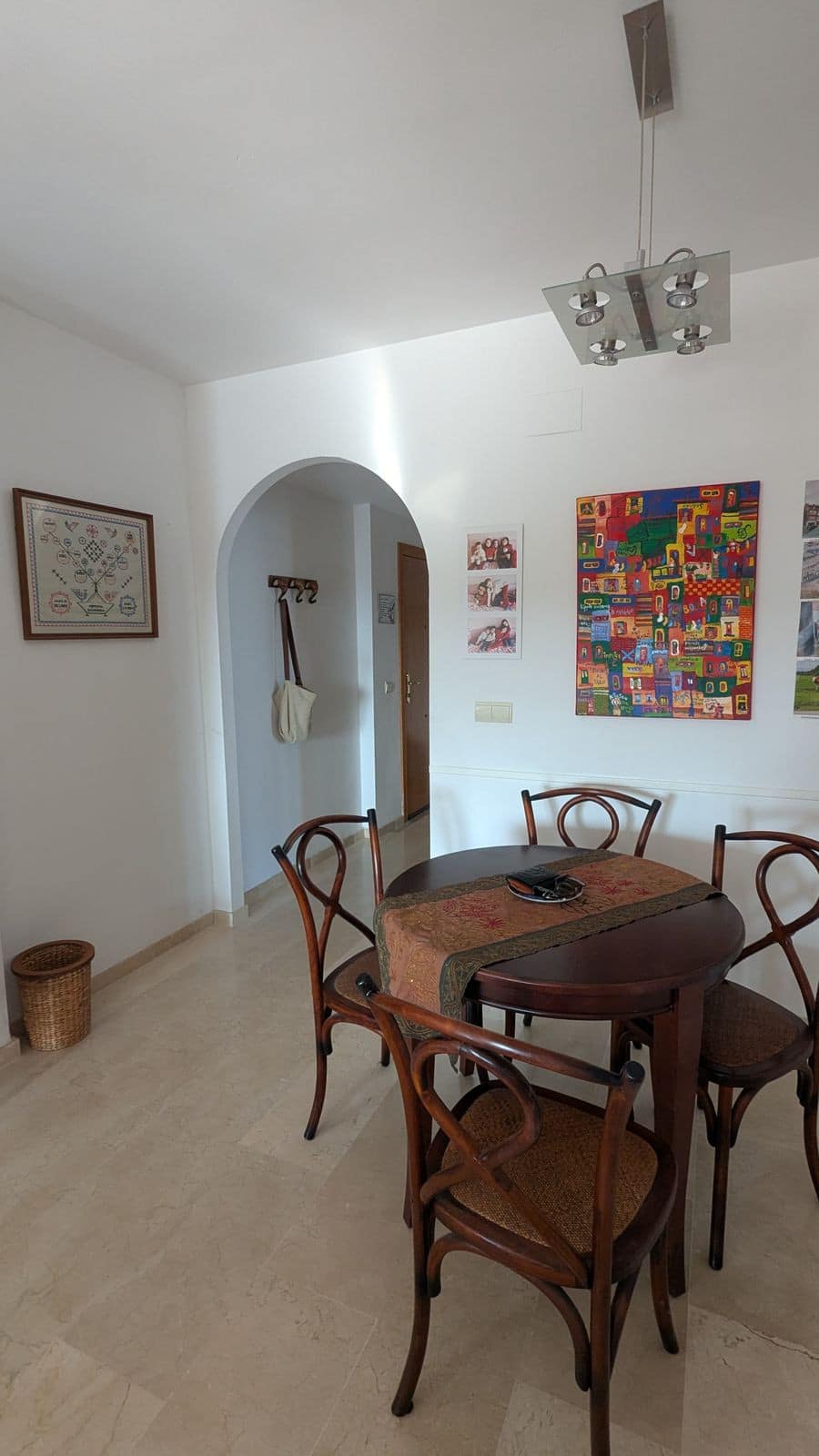 The apartment features 4 bedrooms, two of which have en-suite bathrooms, plus a third bathroom with shower and a guest toilet. A fifth room, currently used as a second, unused kitchen, can easily be converted into an extra bedroom, office, or walk-in closet.