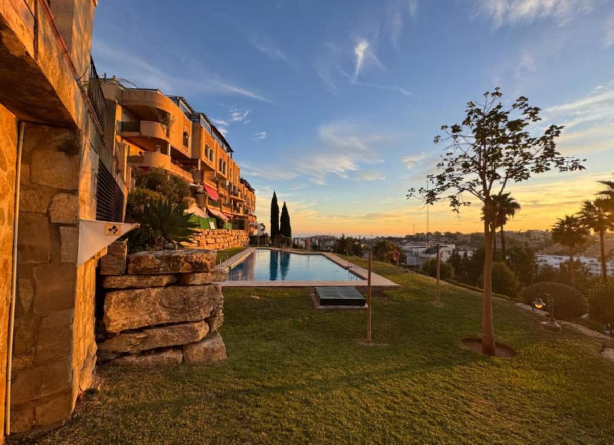 The gated complex offers well-maintained gardens, 2 swimming pools, and a padel court. The area is peaceful, close to Miraflores Golf and all essential services. Málaga Airport is only 35 km away.