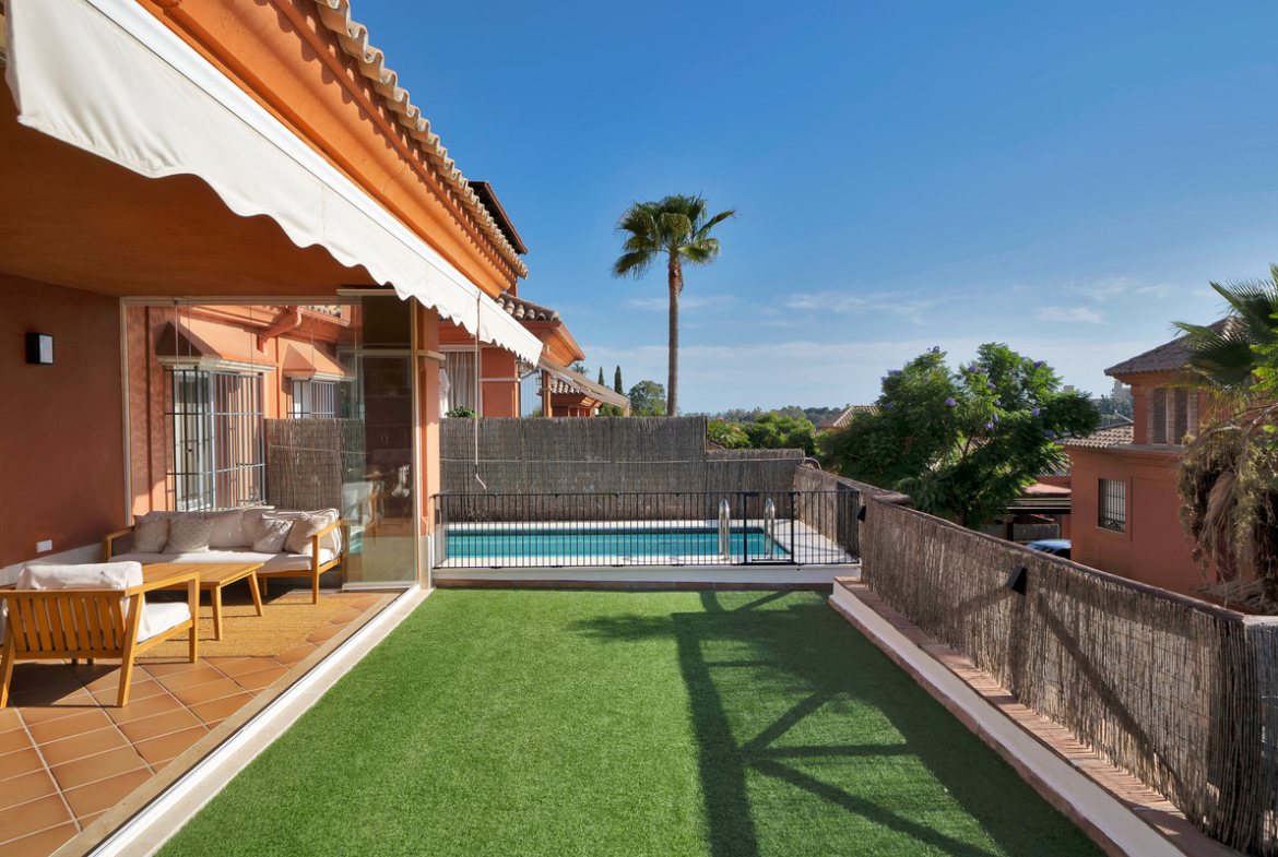 Exclusive Semi-Detached House with Sea and Mountain Views in Santa Clara Golf, Marbella.