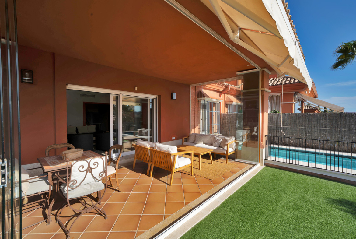 We present this exclusive semi-detached house located in the prestigious Santa Clara Golf residential area in East Marbella. Surrounded by nature, golf courses and with stunning sea and mountain views, this property offers a sophisticated and peaceful lifestyle, just a few minutes from the centre of Marbella and the best beaches in the area. It also has nearby amenities such as schools, supermarkets and the Costa del Sol Hospital.