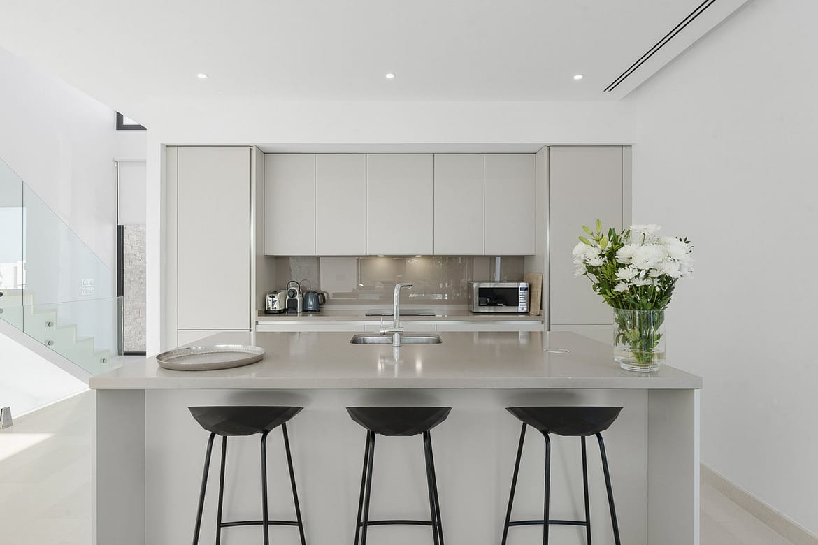 The semi-detached villa is tastefully furnished throughout, with high-quality kitchen and dining finishes and carefully selected garden furniture, ensuring maximum comfort in every corner of the home.