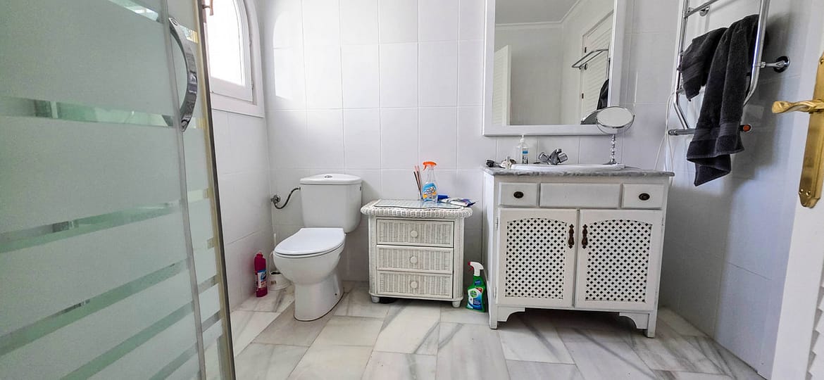 Set on the front line of La Duquesa’s golf course, this south-facing semi-detached bungalow combines space, sustainability, and location in one irresistible package. Offering five bedrooms, all with ensuite bathrooms, this is a home designed for comfortable living and easy entertaining under the Andalusian sun.
