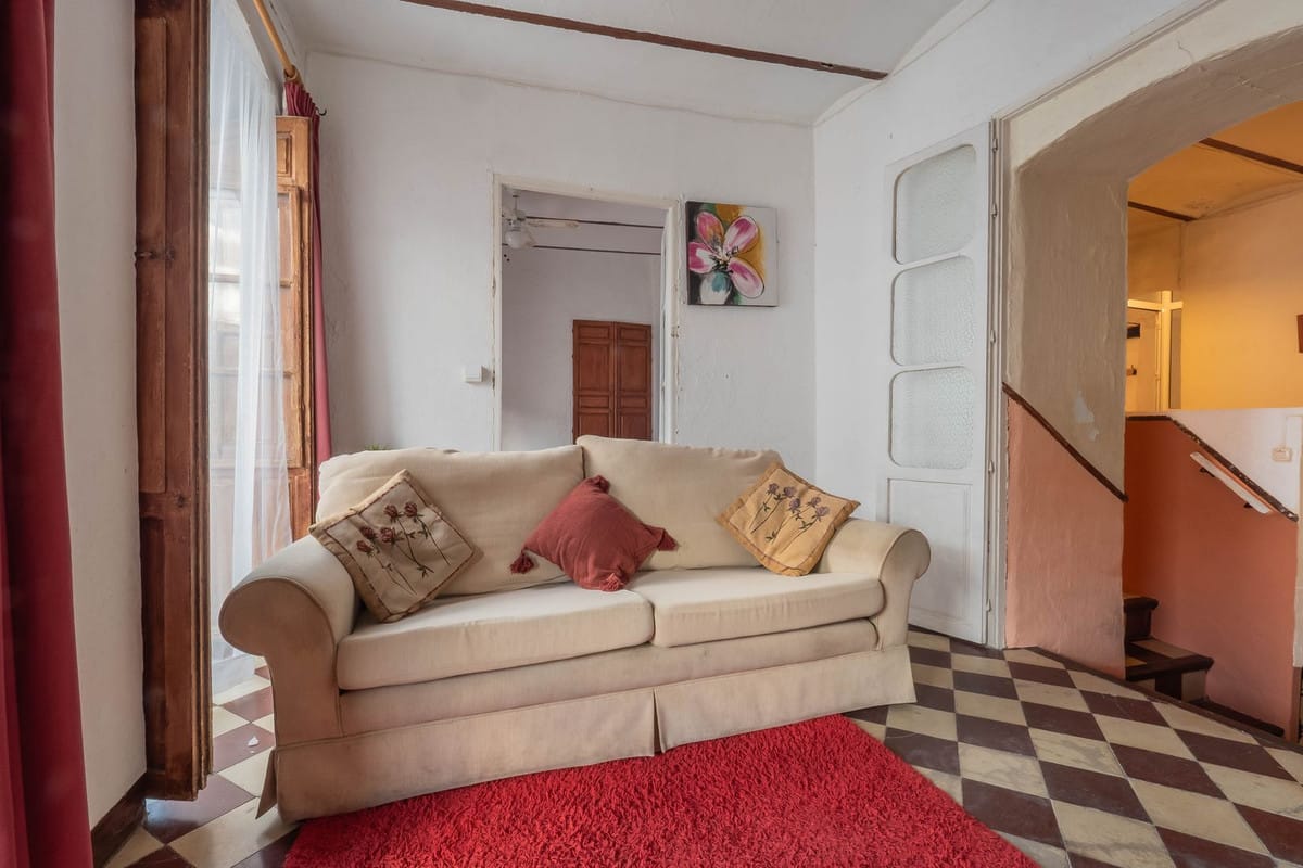 Outdoor living is a standout feature. From the dining area, you access a private terrace with an outdoor bathroom, a large cave, and an upper storage room. Stairs lead to a vast open roof terrace boasting pleasant views over the village rooftops and distant mountains.