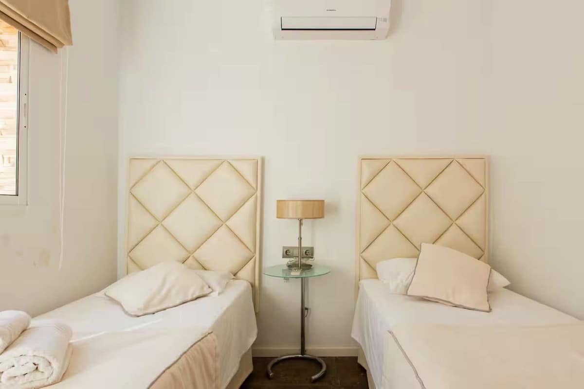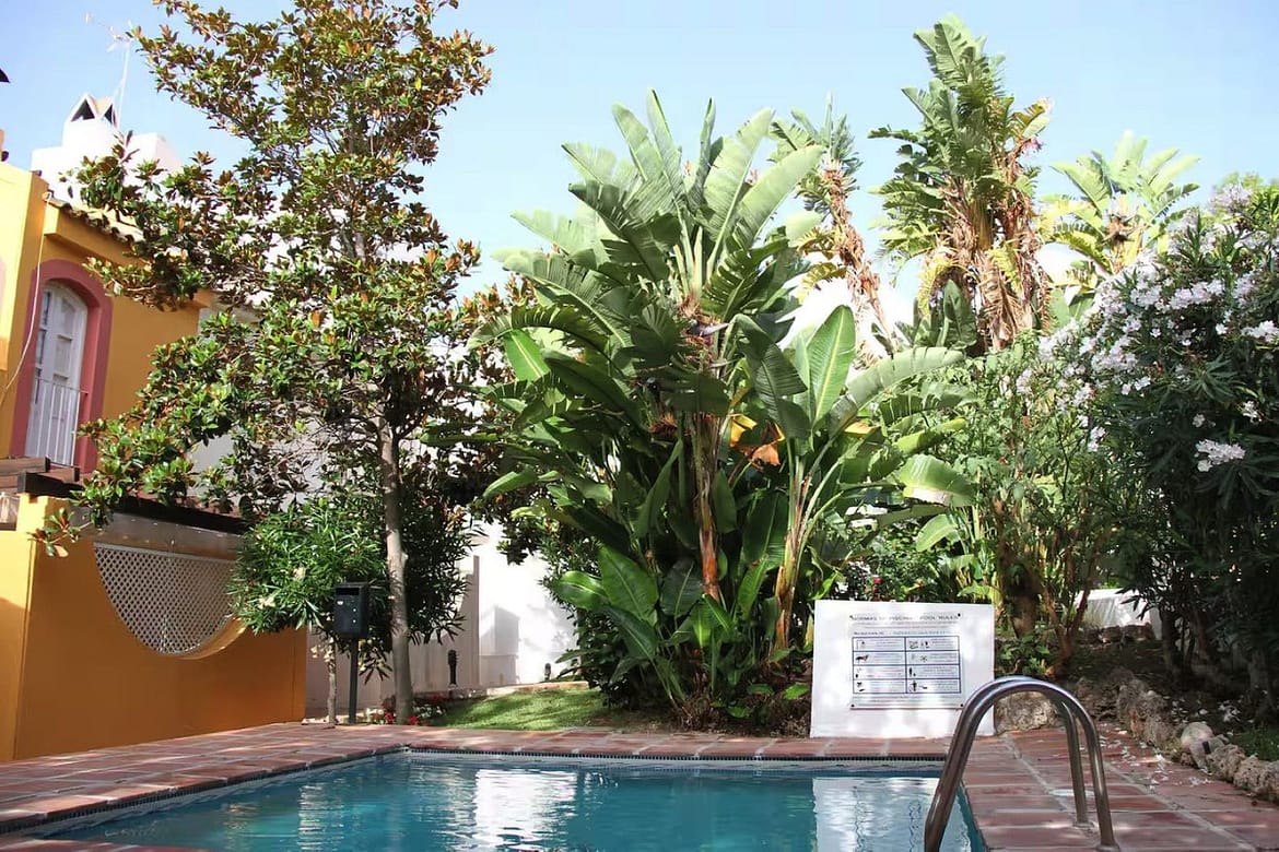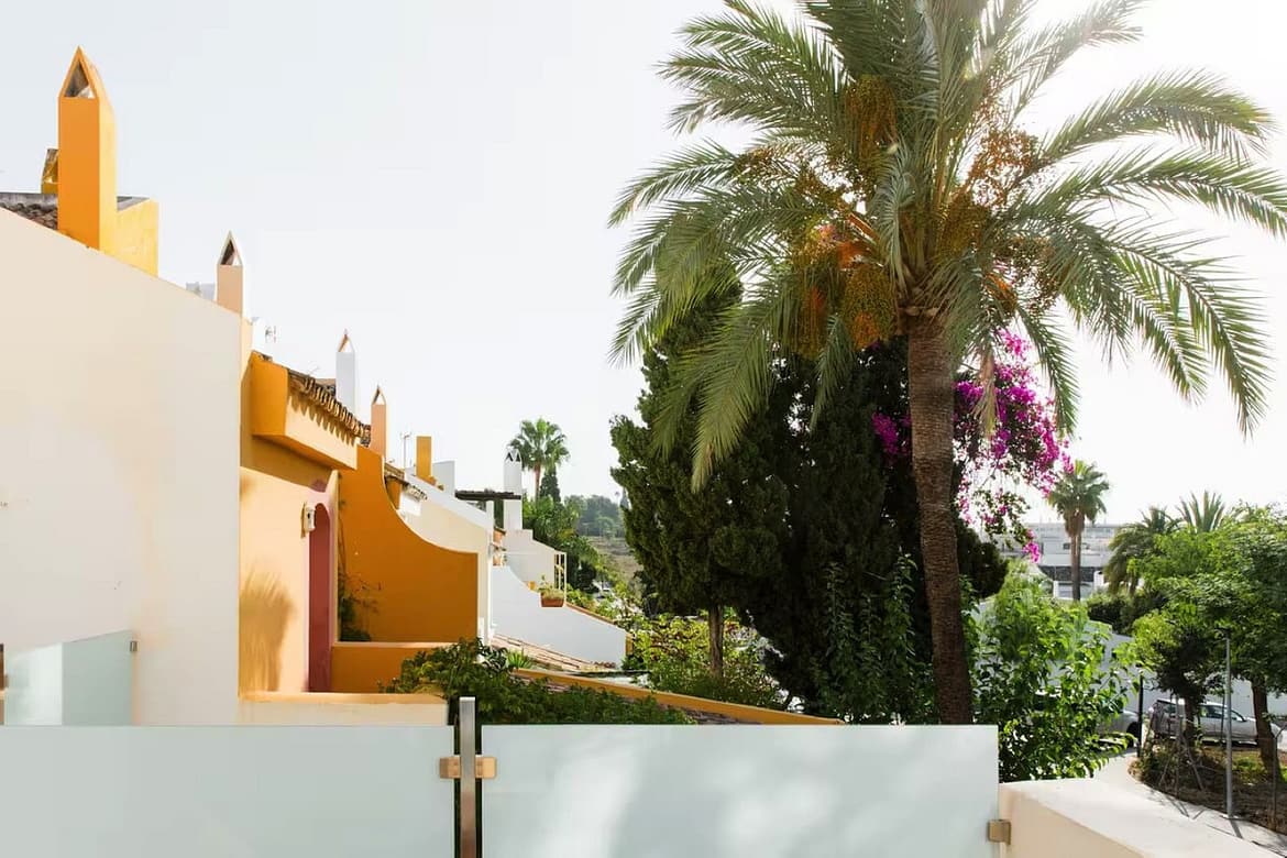 Spanning three levels across 166 m² of built space, this south-facing gem boasts abundant natural light and a versatile layout perfect for large families or holiday rentals. The ground floor features a welcoming living-dining area with a cosy fireplace and parquet flooring, a fully equipped kitchen, and access to a private terrace and balcony for al fresco enjoyment. Upstairs, five generous bedrooms with fitted wardrobes provide ample space, complemented by three modern bathrooms. With air conditioning throughout and a proven track record as a high-yield investment—generating approximately €50,000 for the summer months alone through short-term lets—this property promises excellent returns in Nueva Andalucía's booming rental scene, where 5-bedroom townhouses can fetch €25,000+ monthly in peak season.