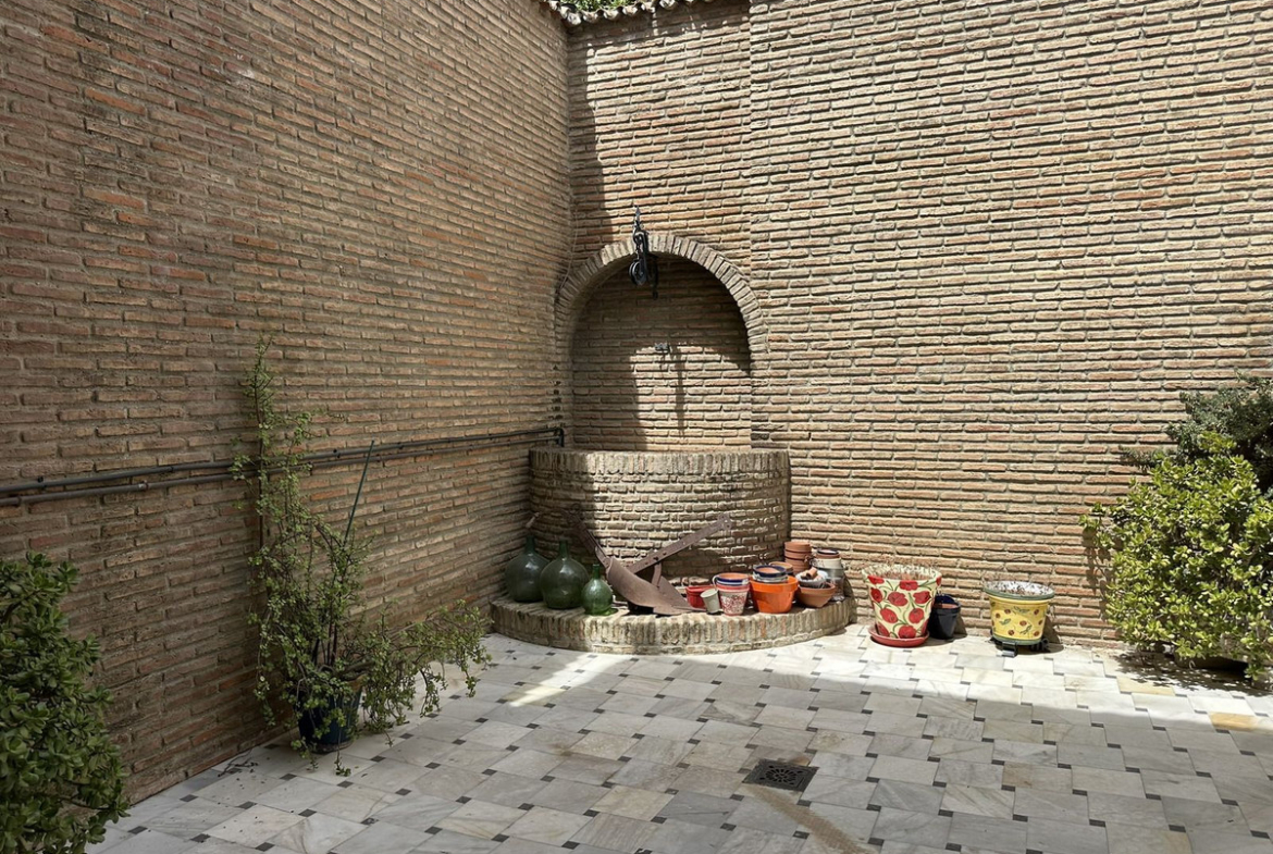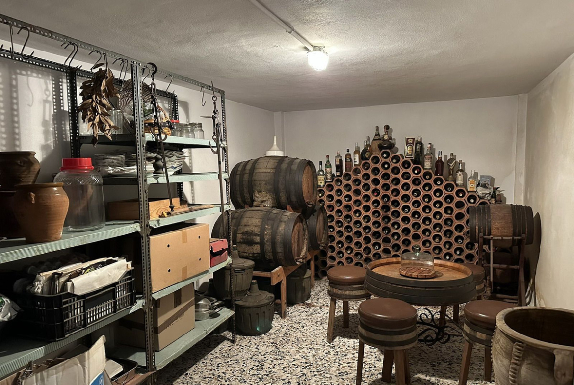 On the ground floor, it features a large garage, a guest toilet, and a room currently used as a wine cellar, perfect for family gatherings or special storage. From here, you can access a beautiful interior patio, partly covered and partly open-air, which brings natural light and ventilation into the home.