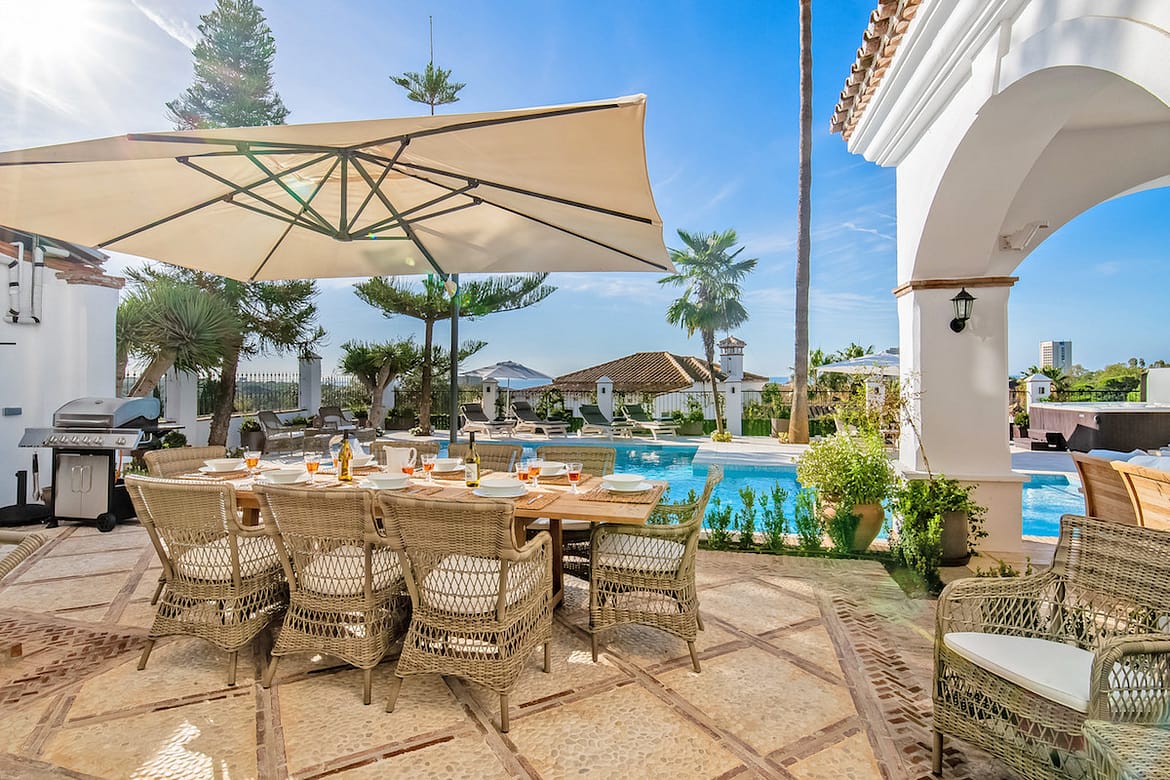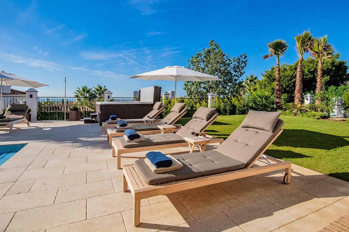 The villa, garden and the terraces have a lot of privacy, little do you realise you are in the middle of the hustle and bustle of the Costa del Sol. Just take a dive in the clear blue private pool, soak up the sun on one of the sunbeds or sit back with a nice drink in the shade and relax.