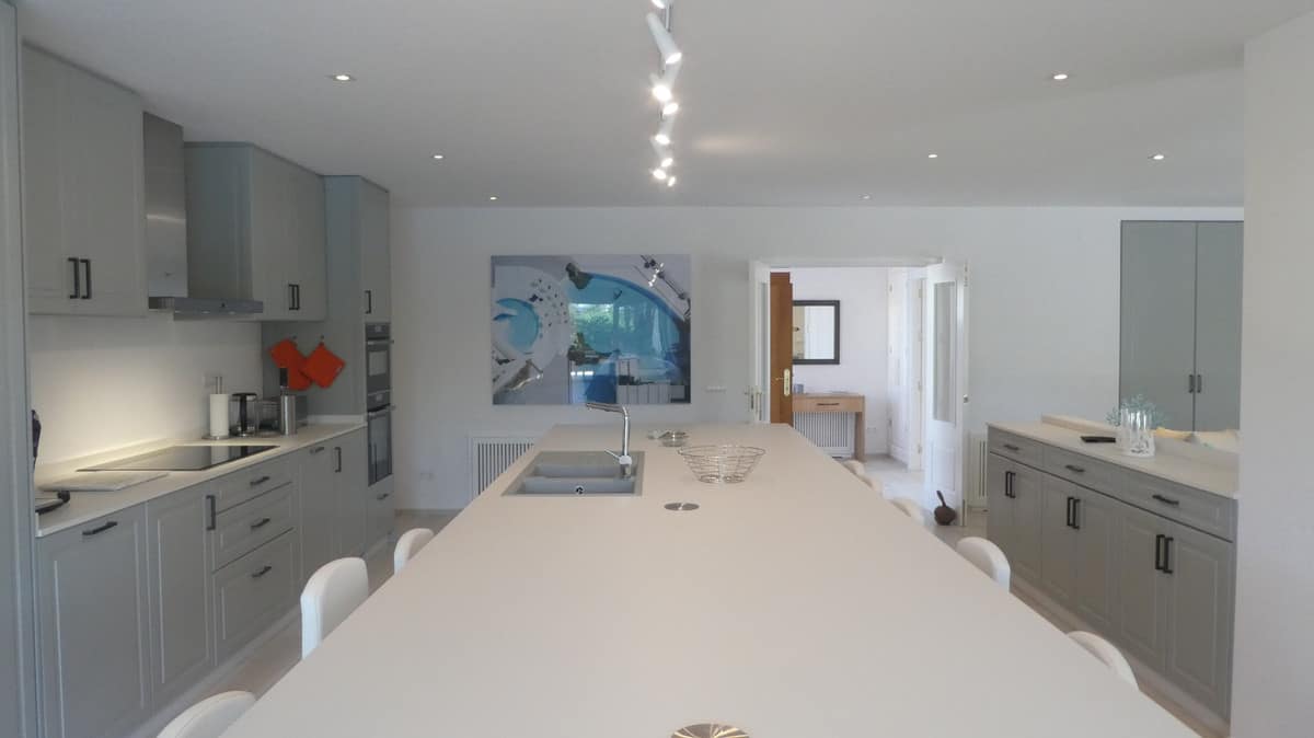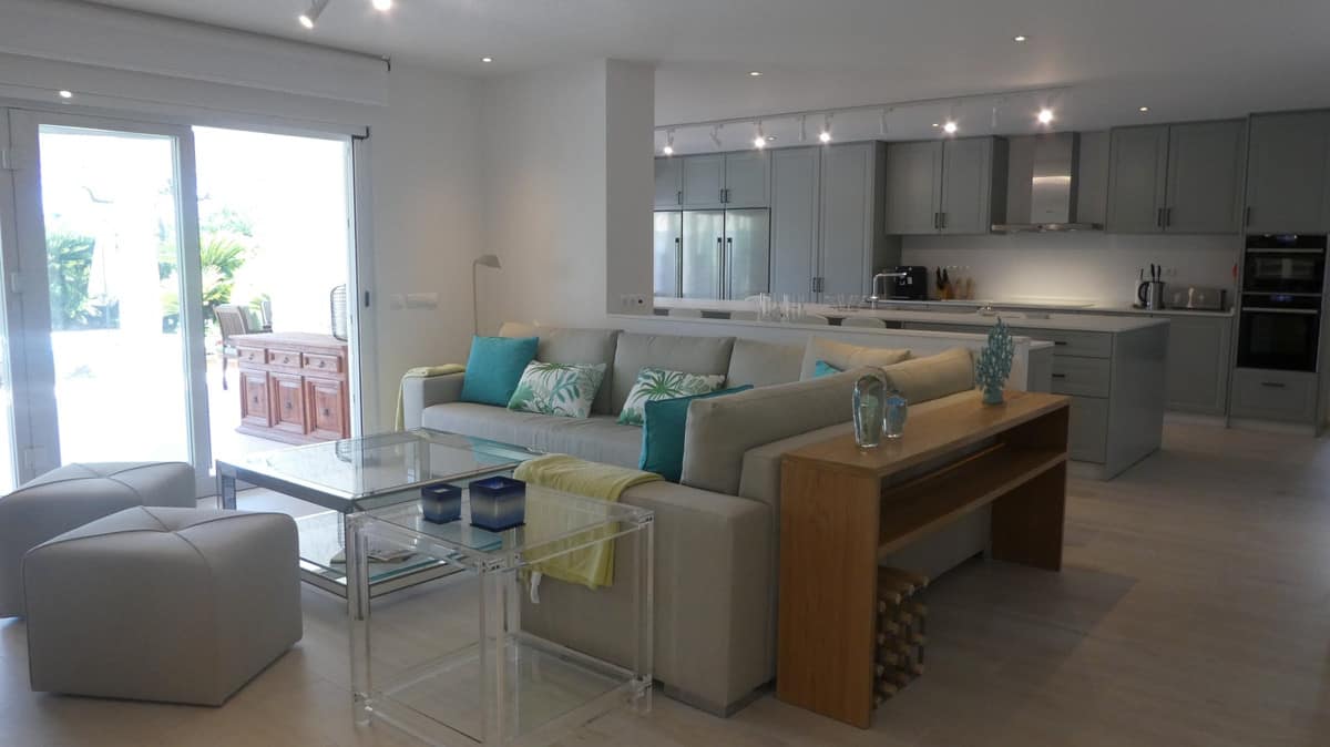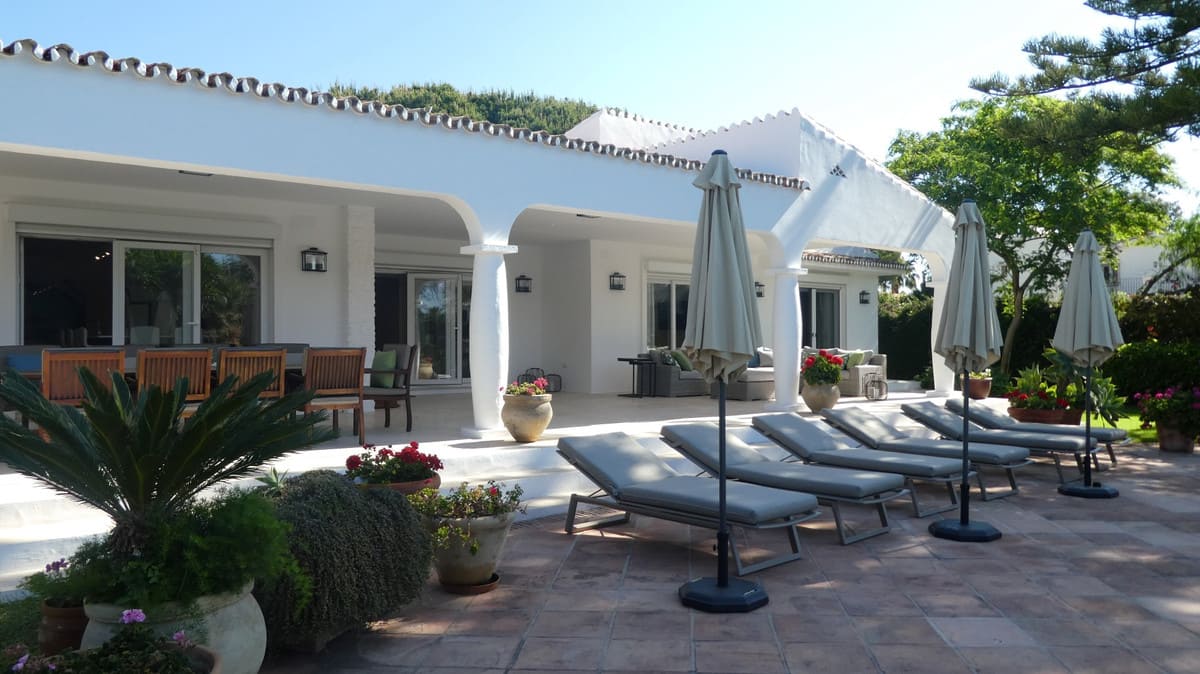 Located in the area of Atalaya Baja in the middle of a residential oasis of tranquility and ten minutes away from Puerto Banús we find this property. Established on a plot of 1695m2 with 270m2 of house built plus 100m2 of terraces, this villa would delight to any tenant thanks to the distribution all in one floor. The property has an open kitchen with a large central island that can be use as well as dining table / breakfast. The kitchen connects with the living/sitting area where we can enjoy a smart TV or a good book in the coach. The living area is directly connected to the terraces where we will find a second outdoor dining area, lounge sunbathing area next to the heated pool and also a covered barbecue area that will be your favorite place to have your pool parties. The garden with a bright green color and its tropical trees will cover the remaining meters of the plot. There will be 6 bedrooms in total, with four bathrooms. All of them have also been renovated. Undoubtedly, it is a perfect mix the use of white Mediterranean lines and walls at the exterior of the house with the functionality and minimalism style in the interior. The master bedroom has an en-suite bathroom. In addition, the property has an indoor parking space for two vehicles.