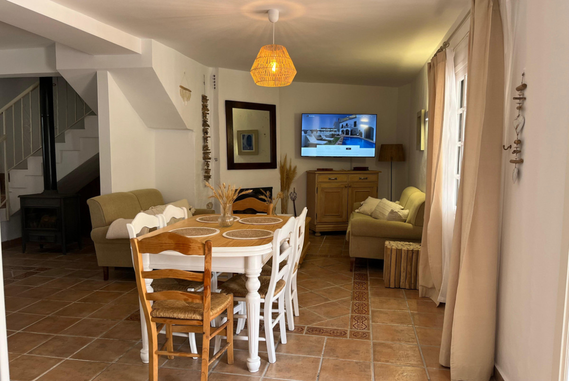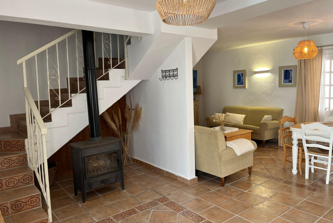 Spanning an impressive 230m² of interior space, the house is thoughtfully designed to cater to all your needs. The fully furnished interiors feature a fully fitted kitchen, a spacious dining room, and a welcoming living room complete with a charming fireplace. The presence of a guest room ensures that hosting visitors is both convenient and comfortable. Fitted wardrobes throughout the property add a touch of practicality and style.