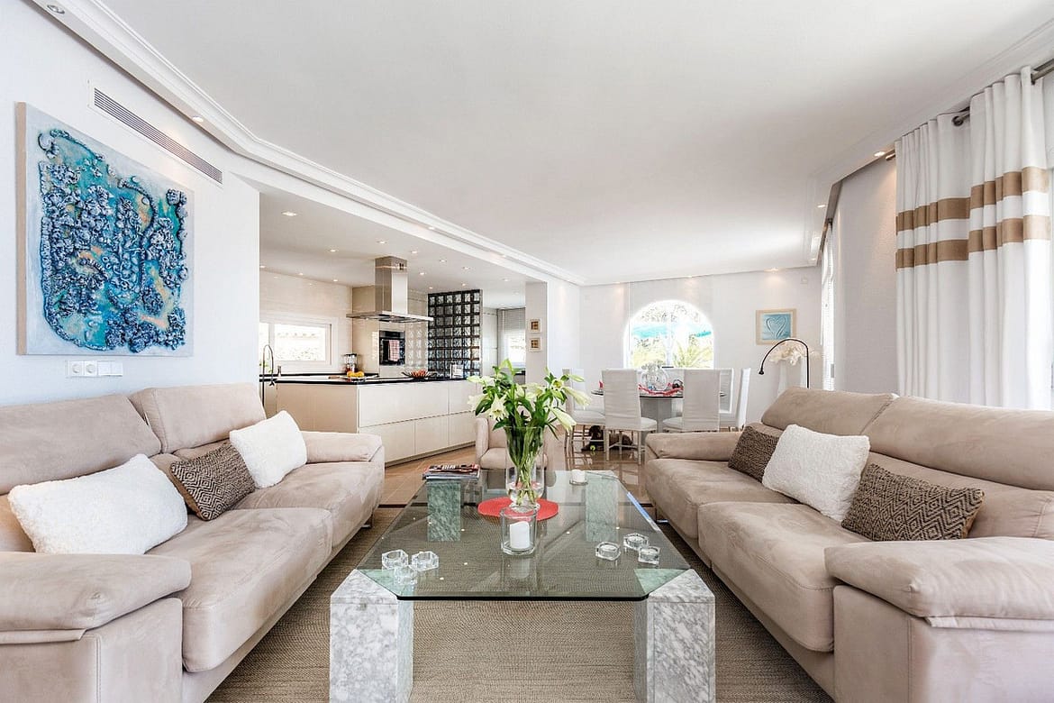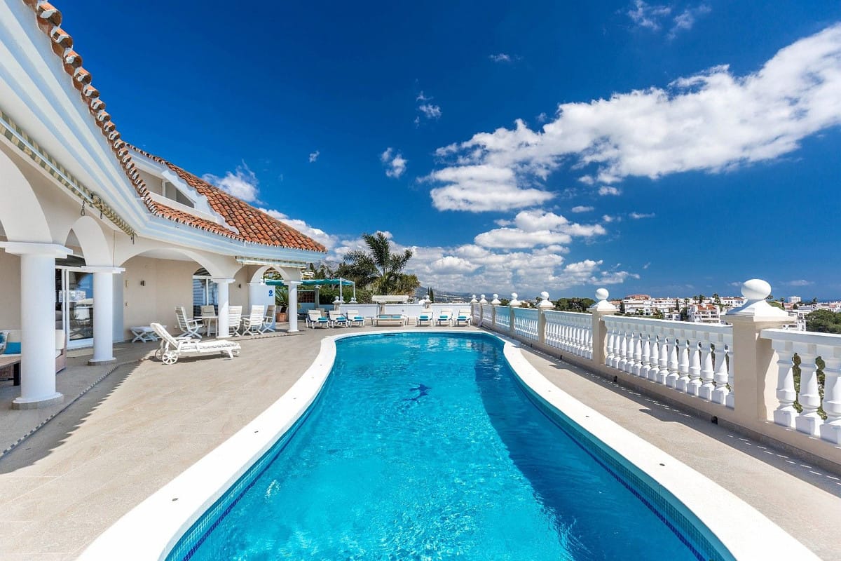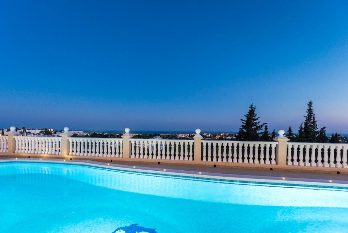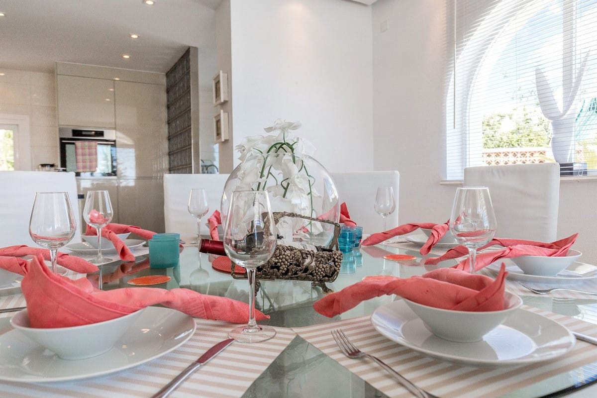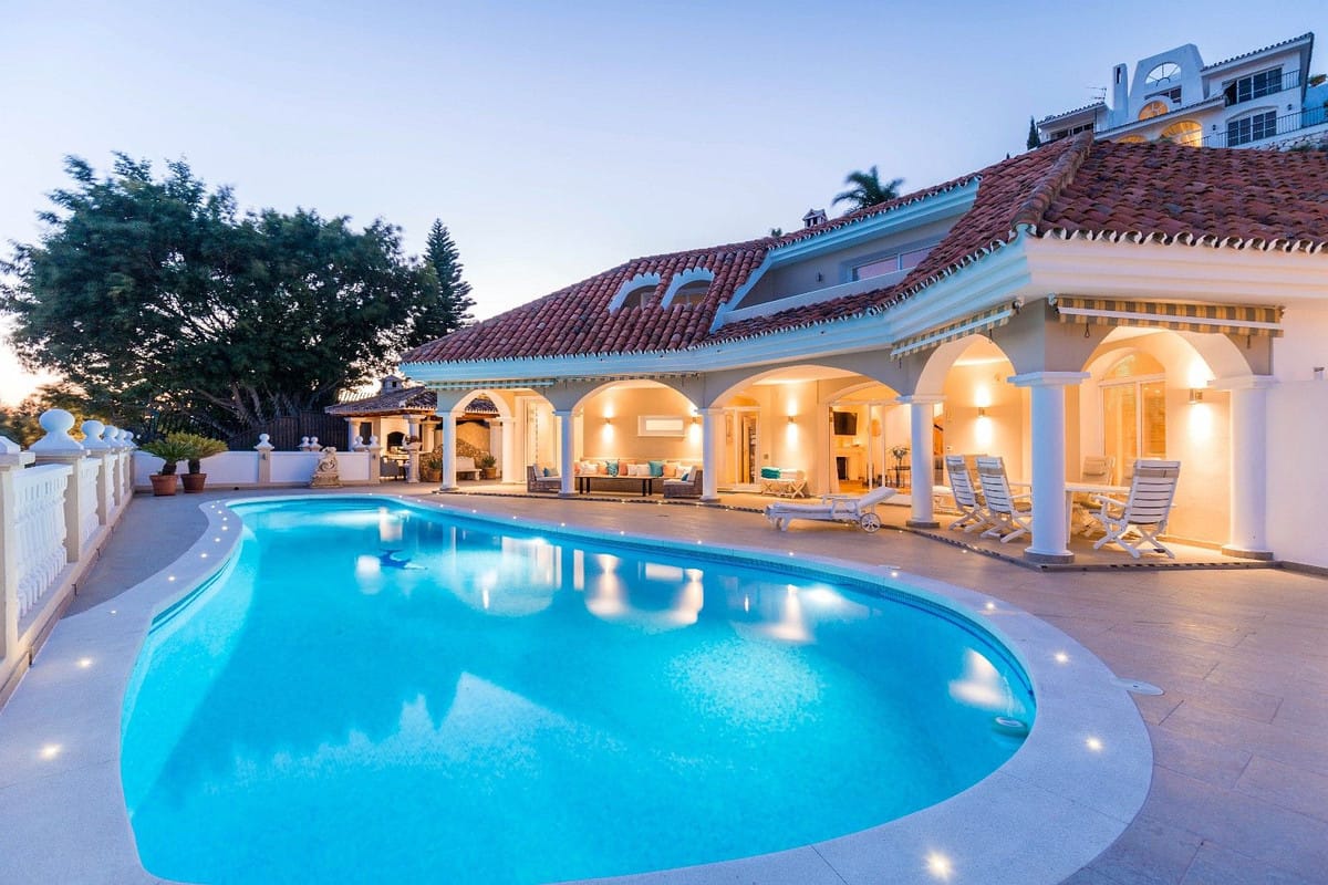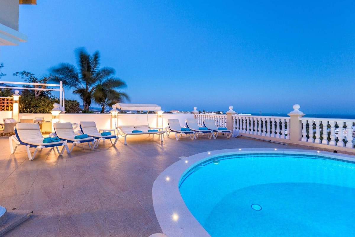 Spacious and luxuriously fully furnished villa with 12 beds. There is sun from morning to evening New large tiled outdoor area -terrace – with many sitting groups – Sunbeds and a 15 meter pool on the terrace. BBQ with Weber grill – fireplace – refrigerator – washing machine – Down Lights – music Absolutely perfect for atmospheric cool evenings with good food – wine and soft lighting from the terrace and pool. Large living room with comfortable sofa, perfect for relaxing, flat screen TV, music, fireplace, dining room. Kitchen fully equipped with coffee machine, kettle, toaster, iron, microwave, dishwasher, stove, 2 fridges, freezer. Very large selection of service – glass for 12 people. There are 5 Delicate bedrooms with en-suite bathroom, bathtub/shower, all with hair dryer 1 guest toilet