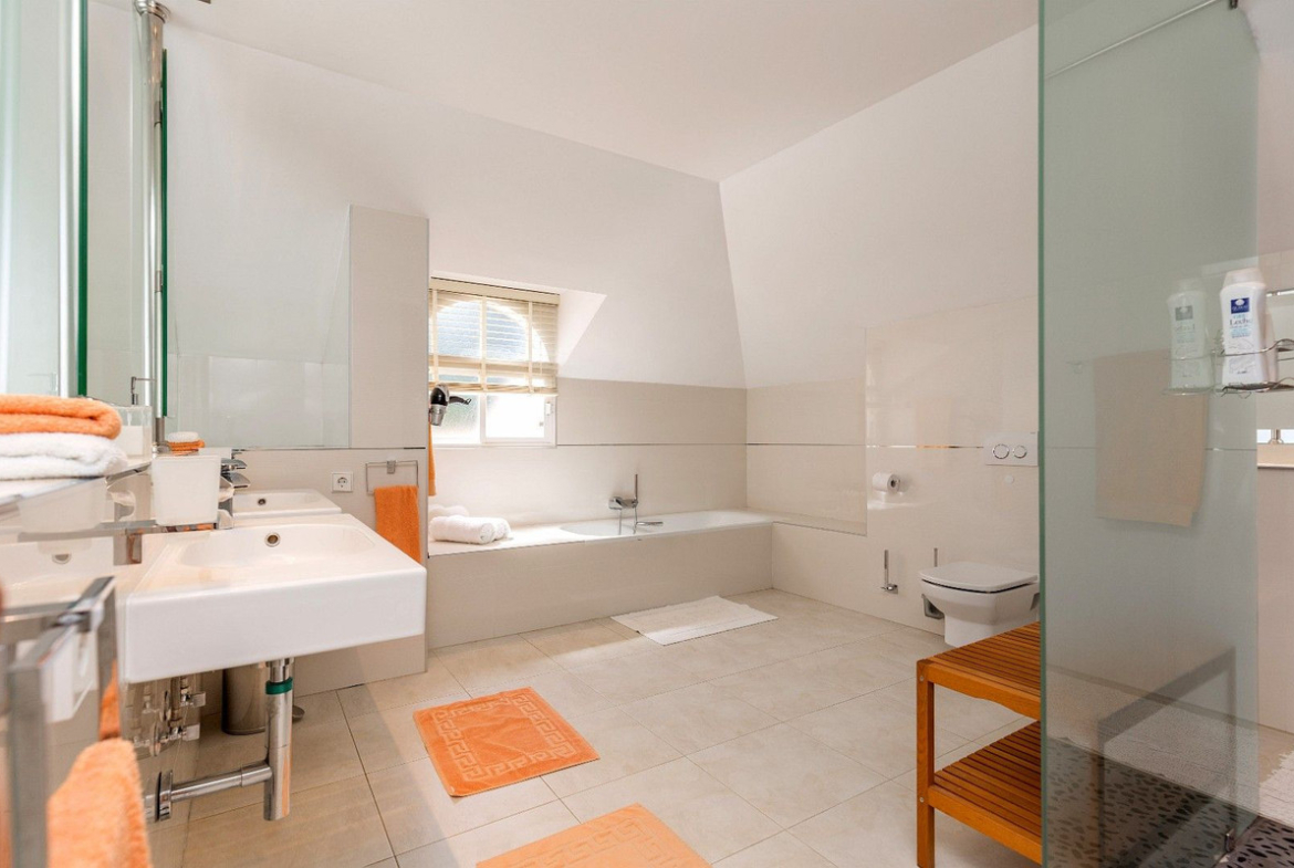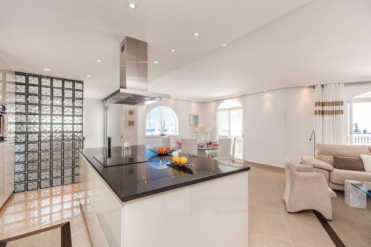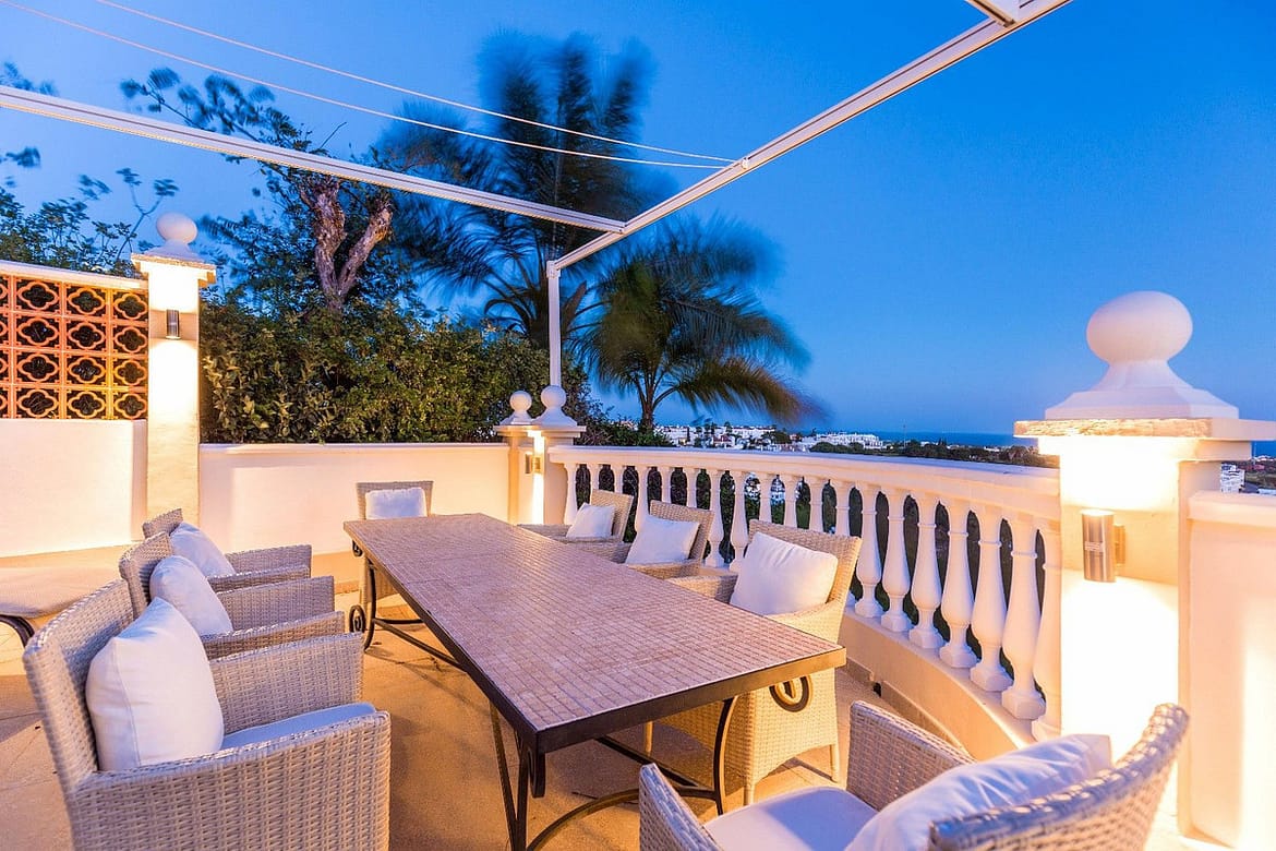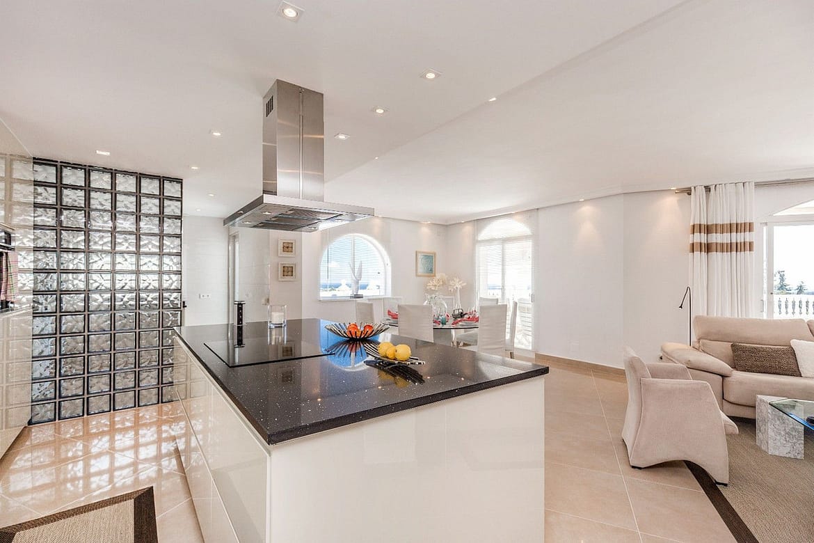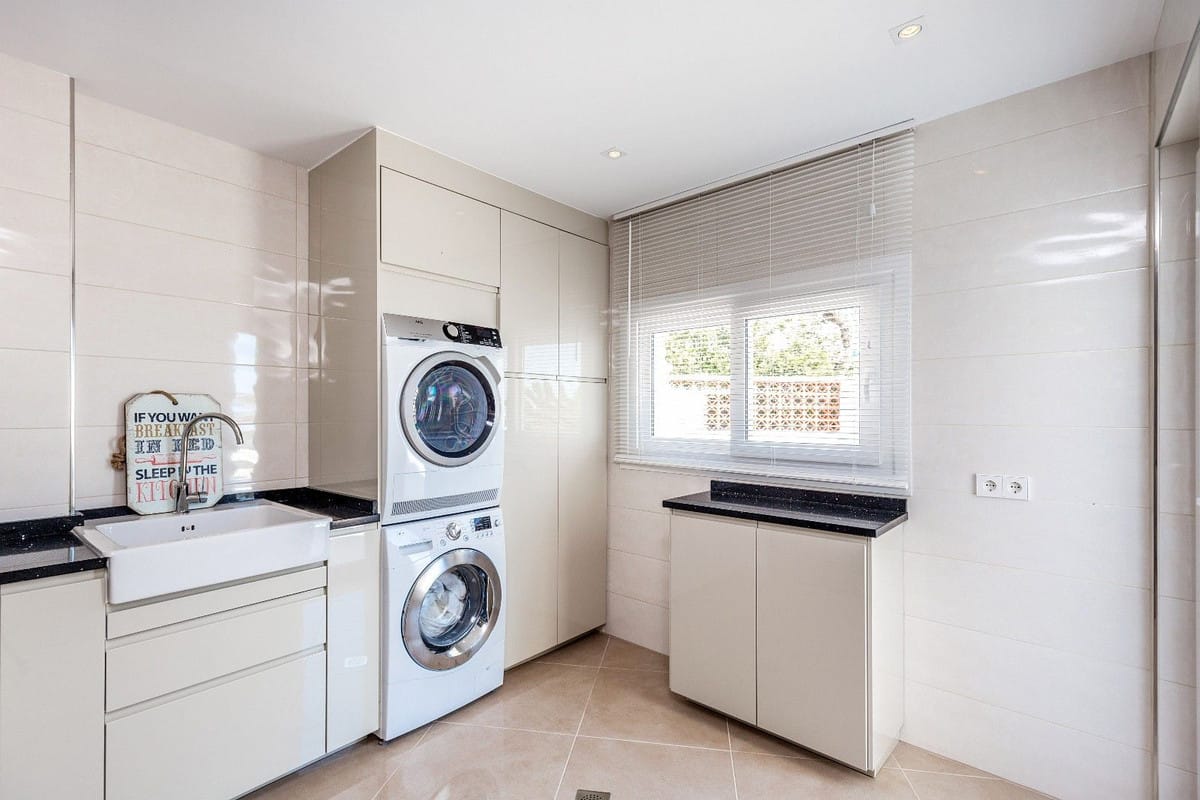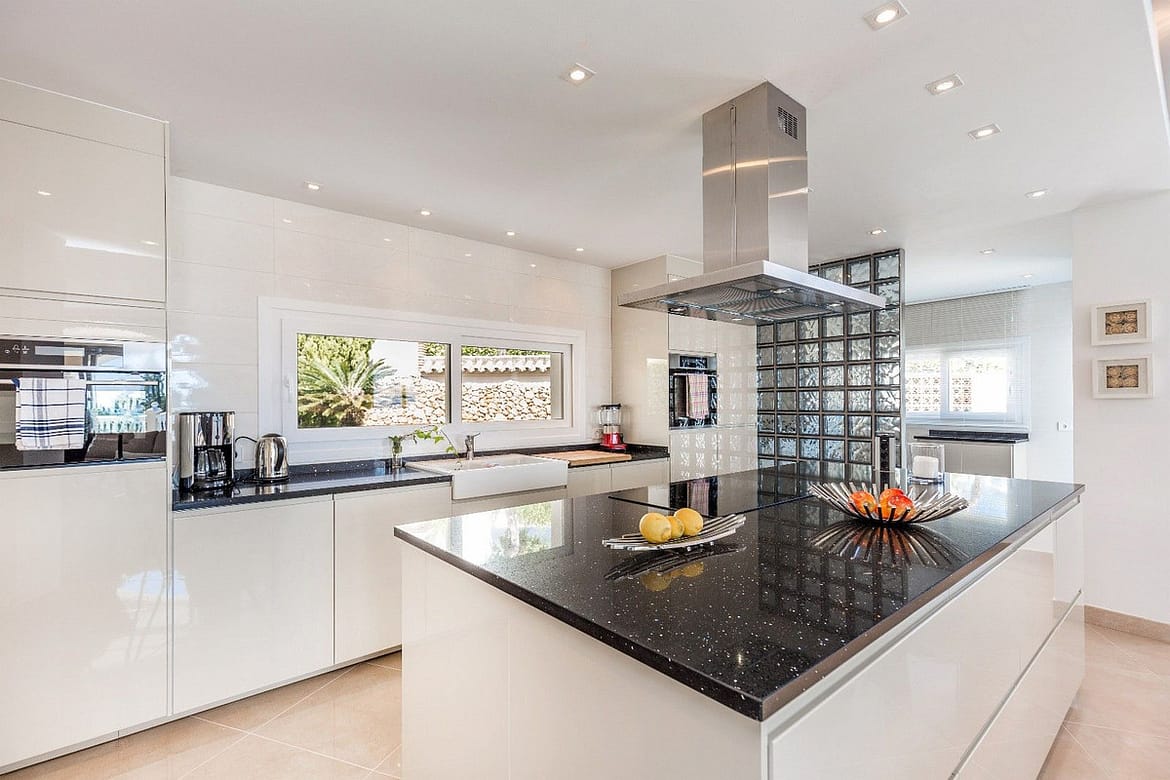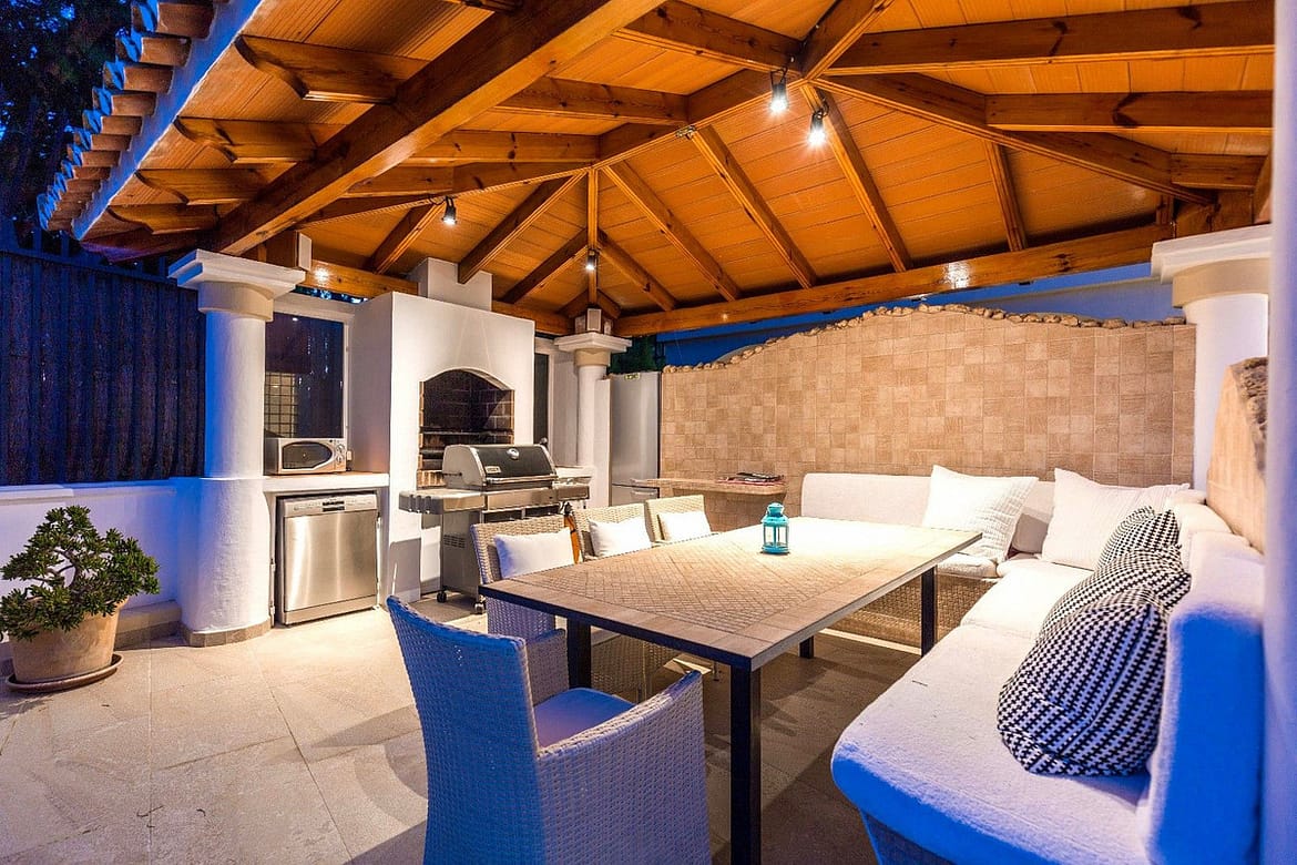 Spacious and luxuriously fully furnished villa with 12 beds. There is sun from morning to evening New large tiled outdoor area -terrace – with many sitting groups – Sunbeds and a 15 meter pool on the terrace. BBQ with Weber grill – fireplace – refrigerator – washing machine – Down Lights – music Absolutely perfect for atmospheric cool evenings with good food – wine and soft lighting from the terrace and pool. Large living room with comfortable sofa, perfect for relaxing, flat screen TV, music, fireplace, dining room. Kitchen fully equipped with coffee machine, kettle, toaster, iron, microwave, dishwasher, stove, 2 fridges, freezer. Very large selection of service – glass for 12 people. There are 5 Delicate bedrooms with en-suite bathroom, bathtub/shower, all with hair dryer 1 guest toilet