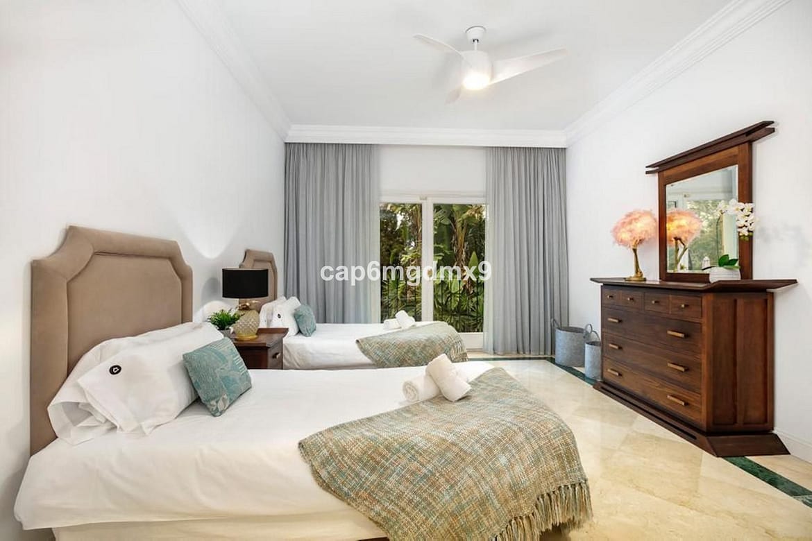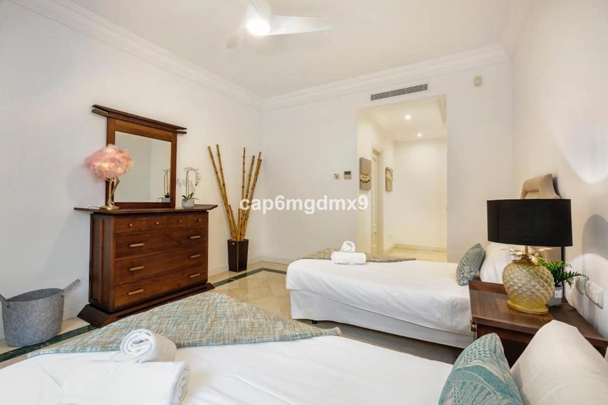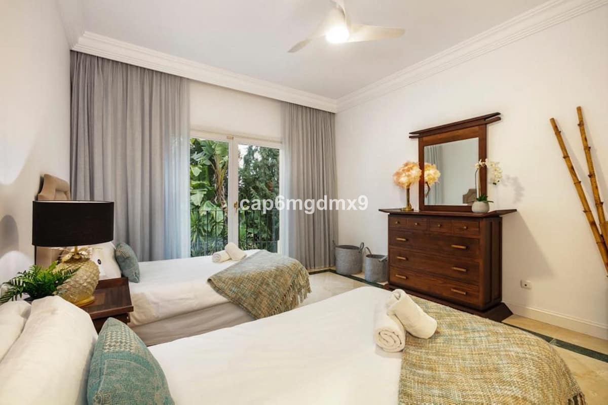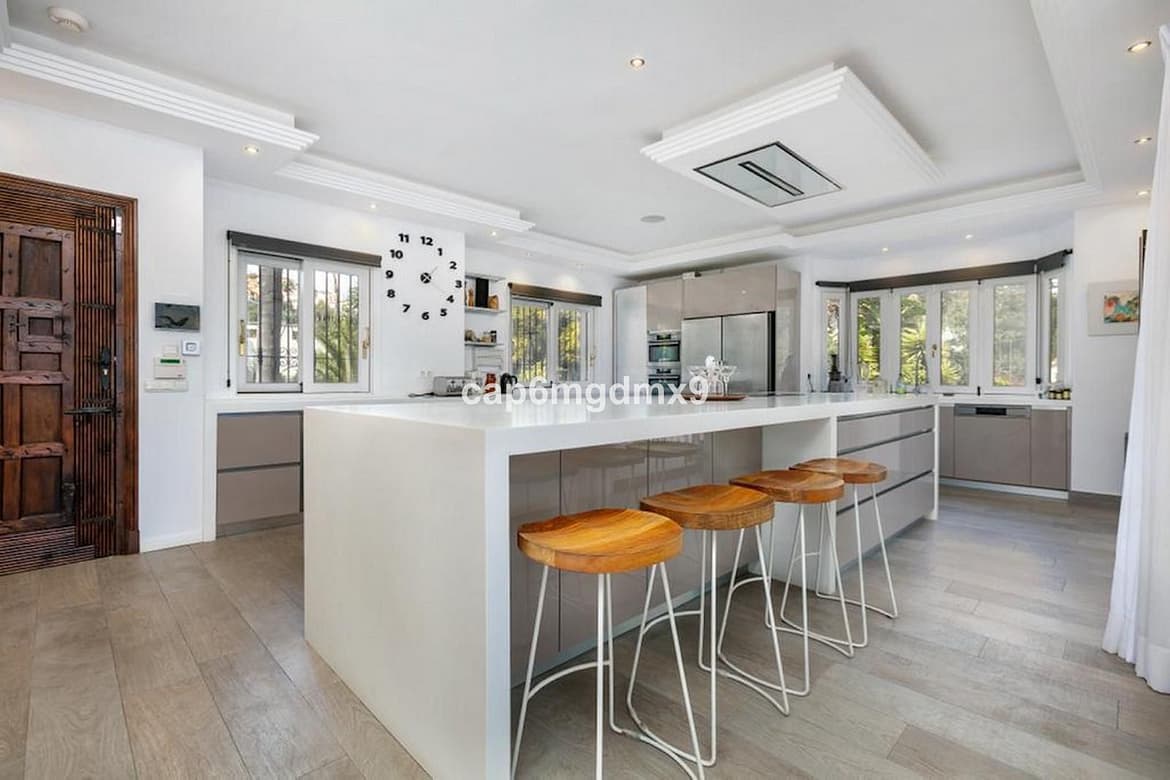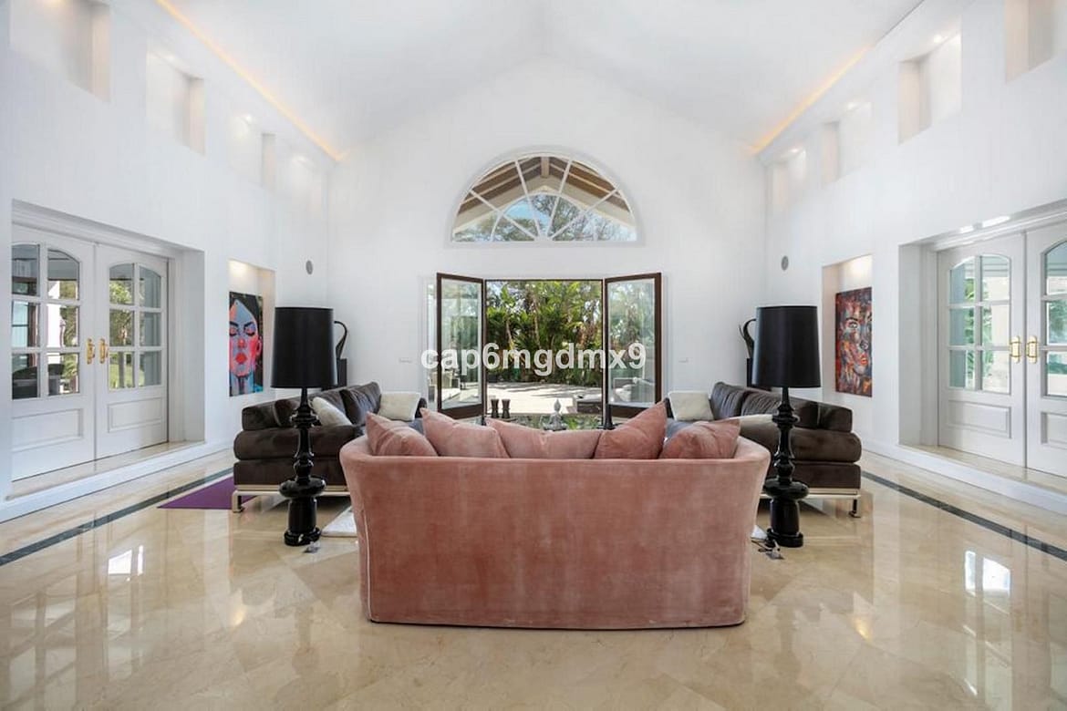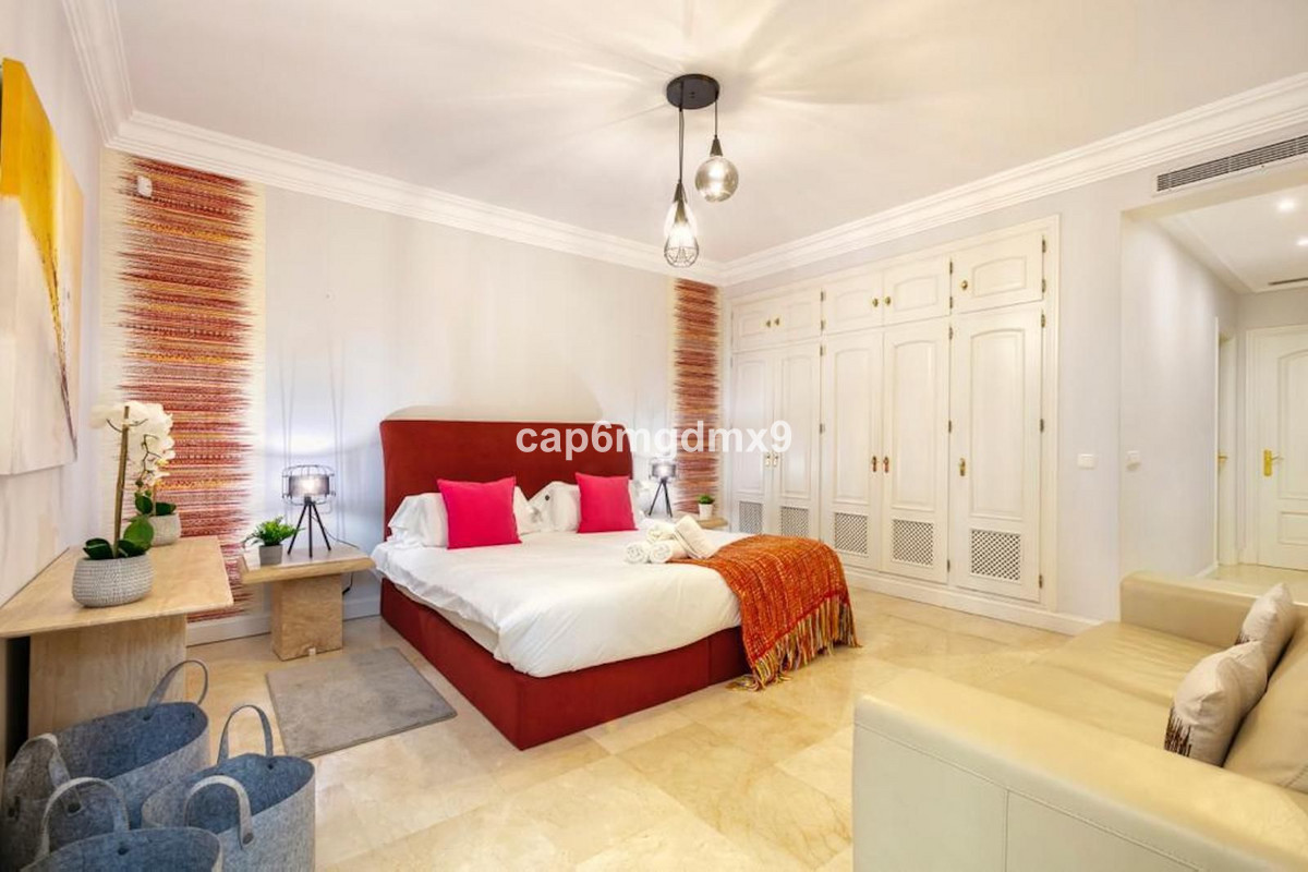 Frontline golf villa located in one of the best areas of Nueva Andalucia, 6 bedrooms and 6 bathrooms. On the ground floor is an entrance room leading to a large living area with double height ceilings, a fully fitted modern kitchen, a dining room, a tv room, a guest toilet and two guest bedrooms with en suite bathrooms. From the living room you have direct access to the large covered terraces and swimming pool. On the first floor are 2 bedrooms with en suite bathroom and private terraces overlooking the pool and garden. On the lower level is a one bedroom with 2 individual beds and another bedroom with double bed, ensuite bathroom and kitchen. Outside is a landscaped garden, private heated pool with decking around and lounge chairs, gazebo, BBQ and dining area.