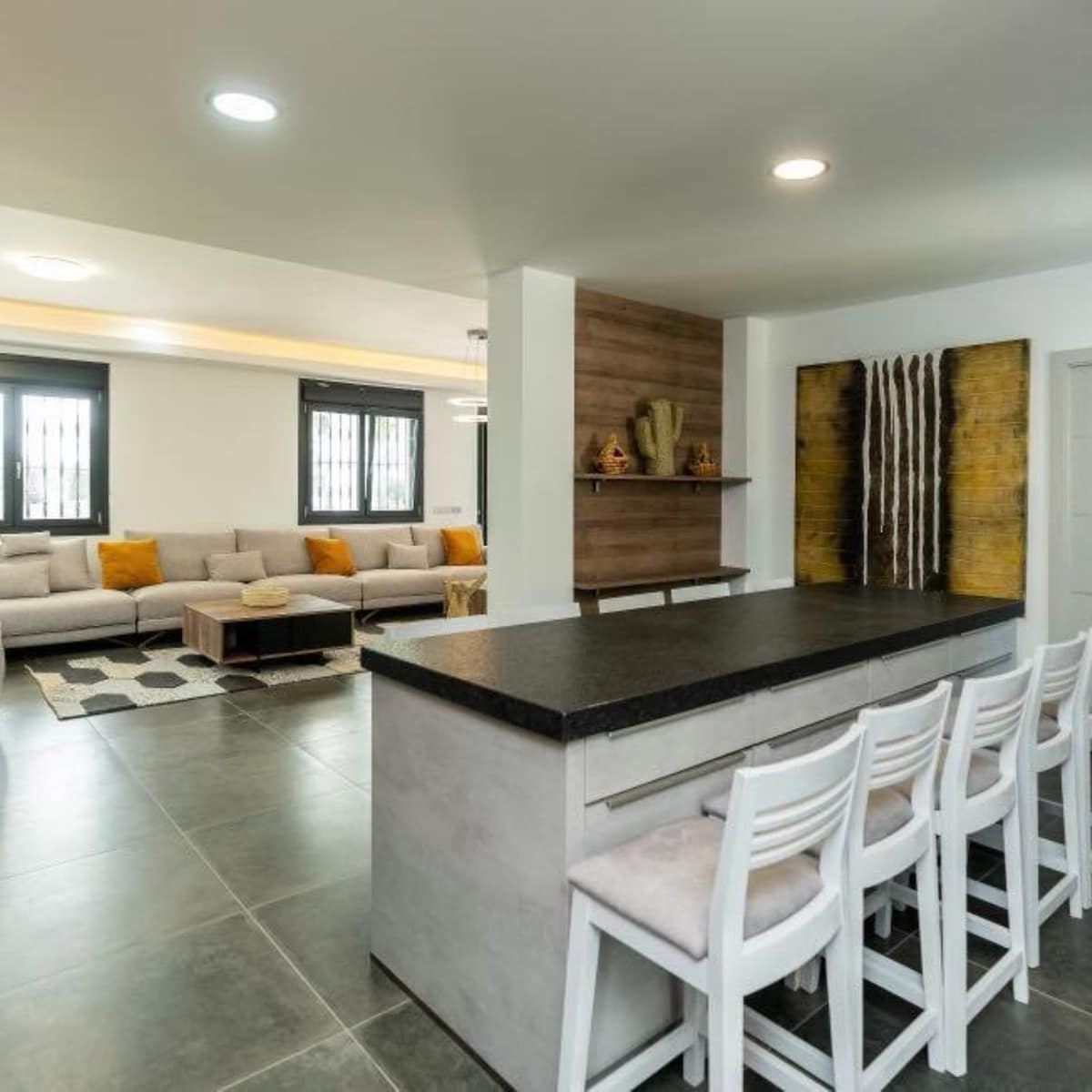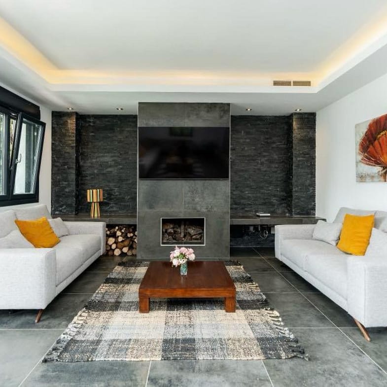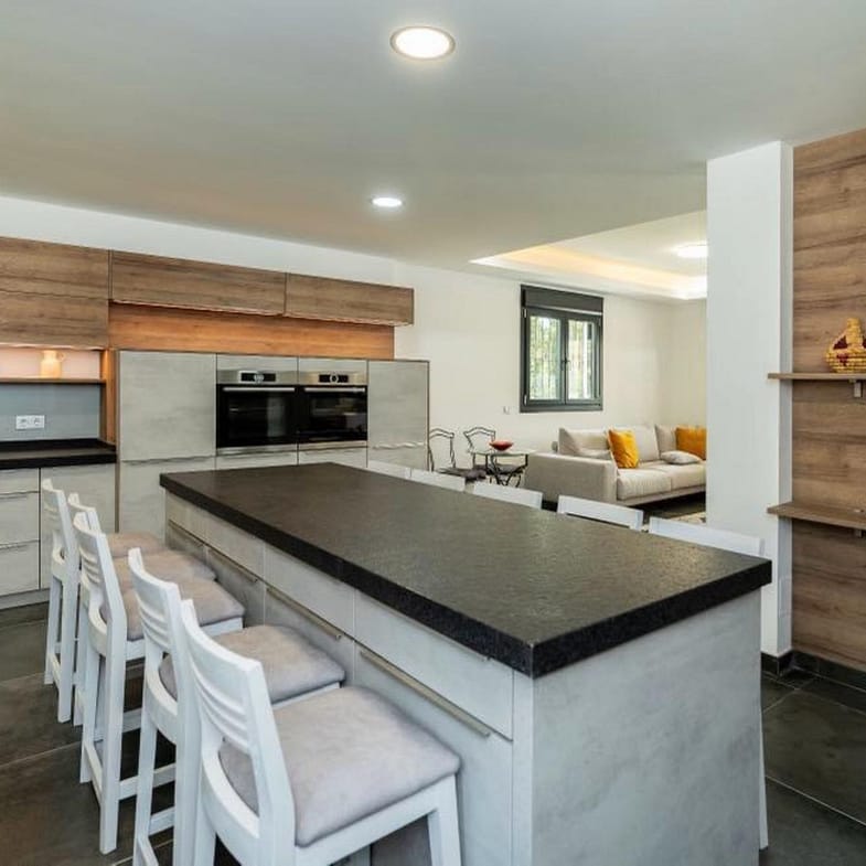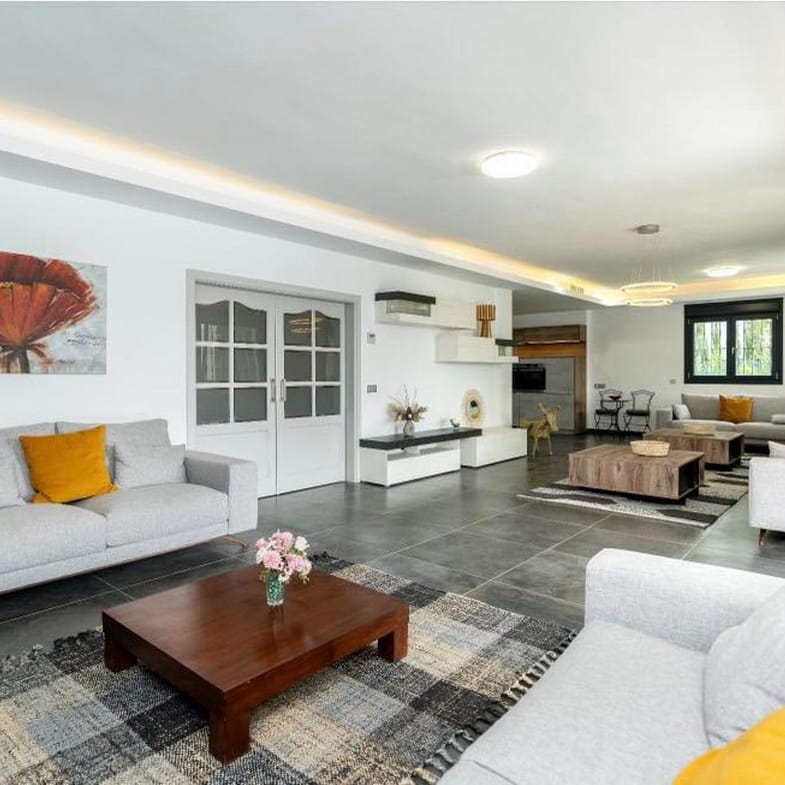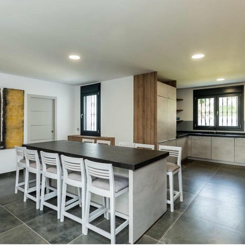 Designed in a modern and functional style, the villa features open and bright spaces, large windows that fill every room with natural light, and high-quality materials throughout. The main living room opens directly onto a large terrace and the pool area — ideal for enjoying the Mediterranean climate year-round.