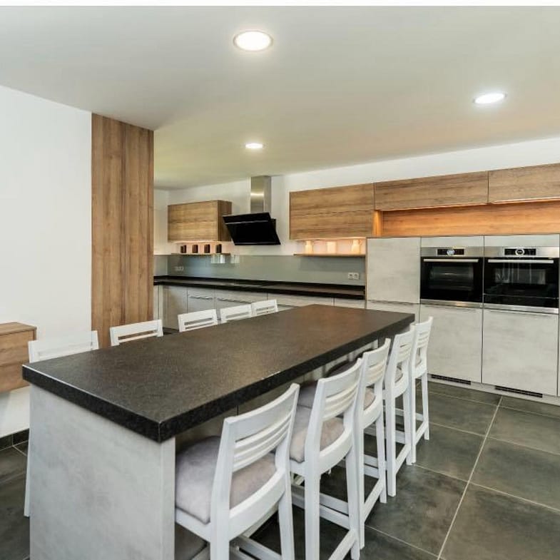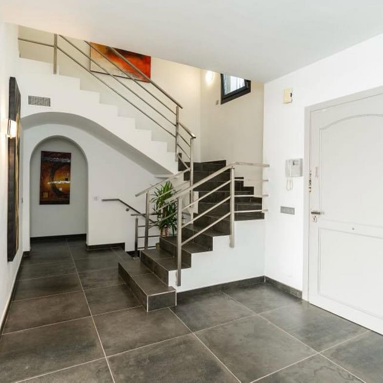 The fully equipped kitchen includes premium appliances and a contemporary design that merges style with practicality. All bedrooms feature en-suite bathrooms, elegant decoration, and a warm, relaxing atmosphere. The master suite stands out for its size and direct access to the private garden.