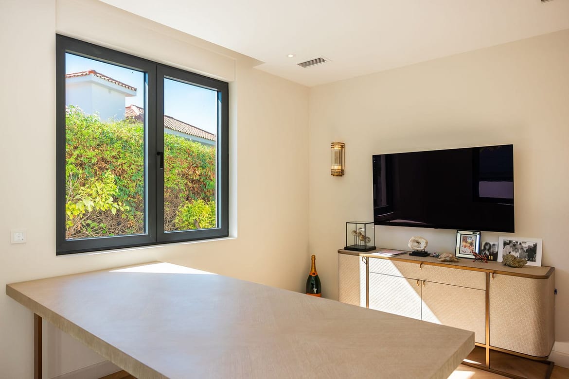 Designed for both comfort and security, the villa includes a high-tech alarm system, electric shutters, and a large underground garage with ample space for multiple vehicles. Outdoors, the heated swimming pool is surrounded by elegant terraces and landscaped gardens — the perfect setting for relaxation or entertaining.