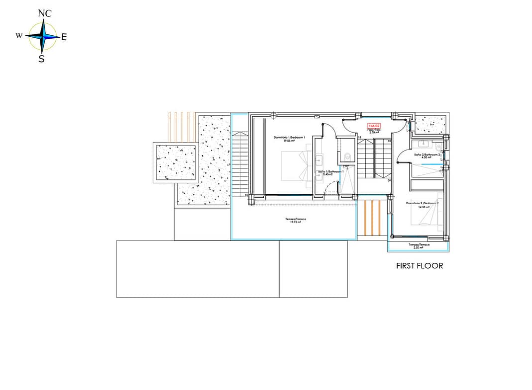 The first floor is distributed in a Master bedroom en-suite with it spacious private terrace and the second guest bedroom with its own bathroom and a balcony.