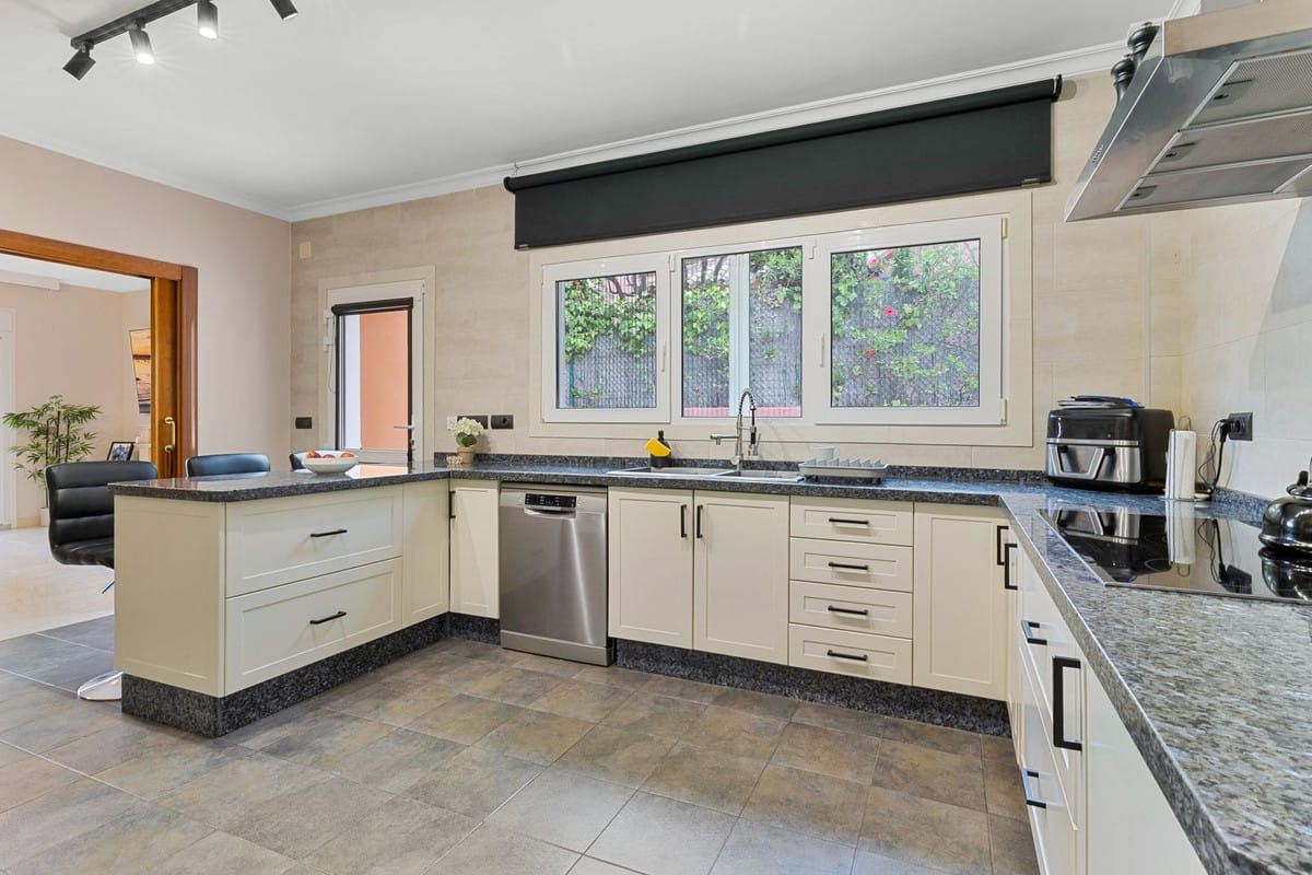 The lower ground level houses a three-car garage, ample storage, a laundry area, and a versatile space ideal for a cinema, gym, games room or home spa. A Finnish sauna with shower and direct access to the large outdoor pool complete this level, offering a full wellness experience. At the foot of the garden, a private orchard with fruit trees brings a touch of Andalusian charm.